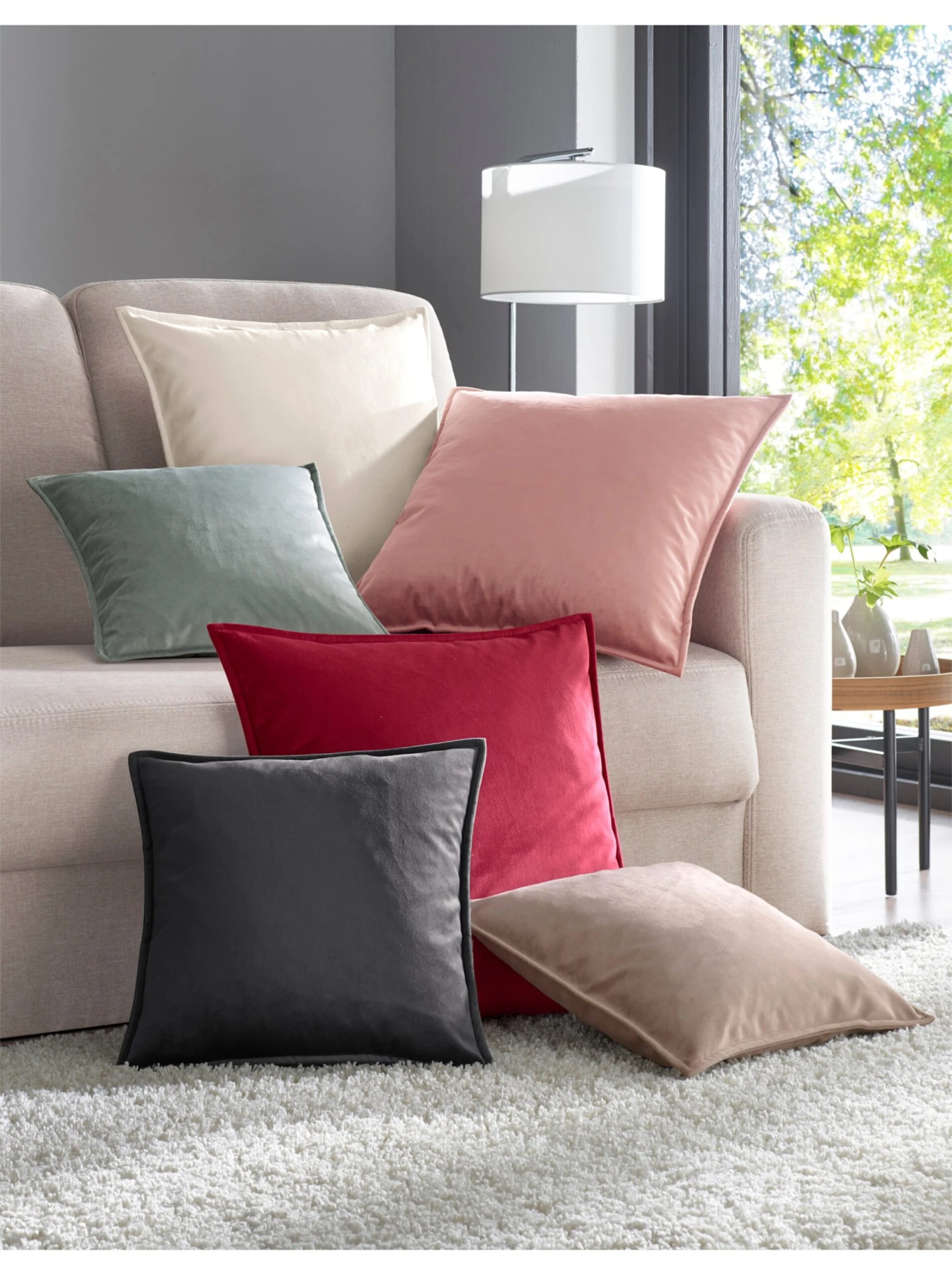 Schön gearbeitet mit kleinem Stehsaum: Kissenhüllen in traumhaft weichem, dezent glänzenden Samt. In moderner Farbenwahl. Mit Reißverschluss.