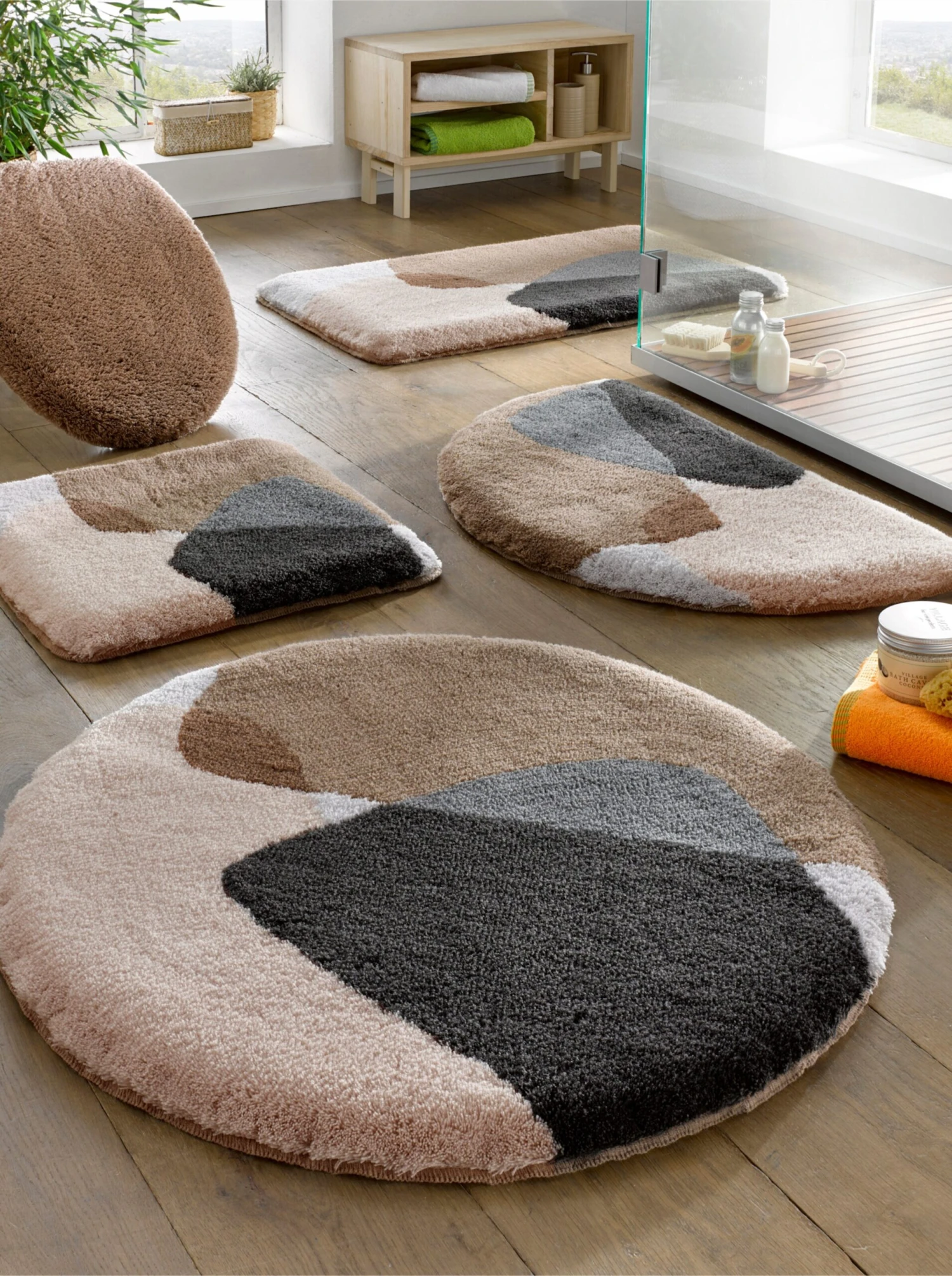 Traumhaft schöne Marken-Qualität! Setzen Sie modische Akzente mit dieser attraktiv gemusterten Badezimmer-Garnitur. Der Flor verwöhnt Ihre Füße auf Schritt und Tritt. Florhöhe ca. 20 mm. In vielen Größen erhältlich. Rutschhemmend latexiert. Für Fußbodenheizung geeignet.