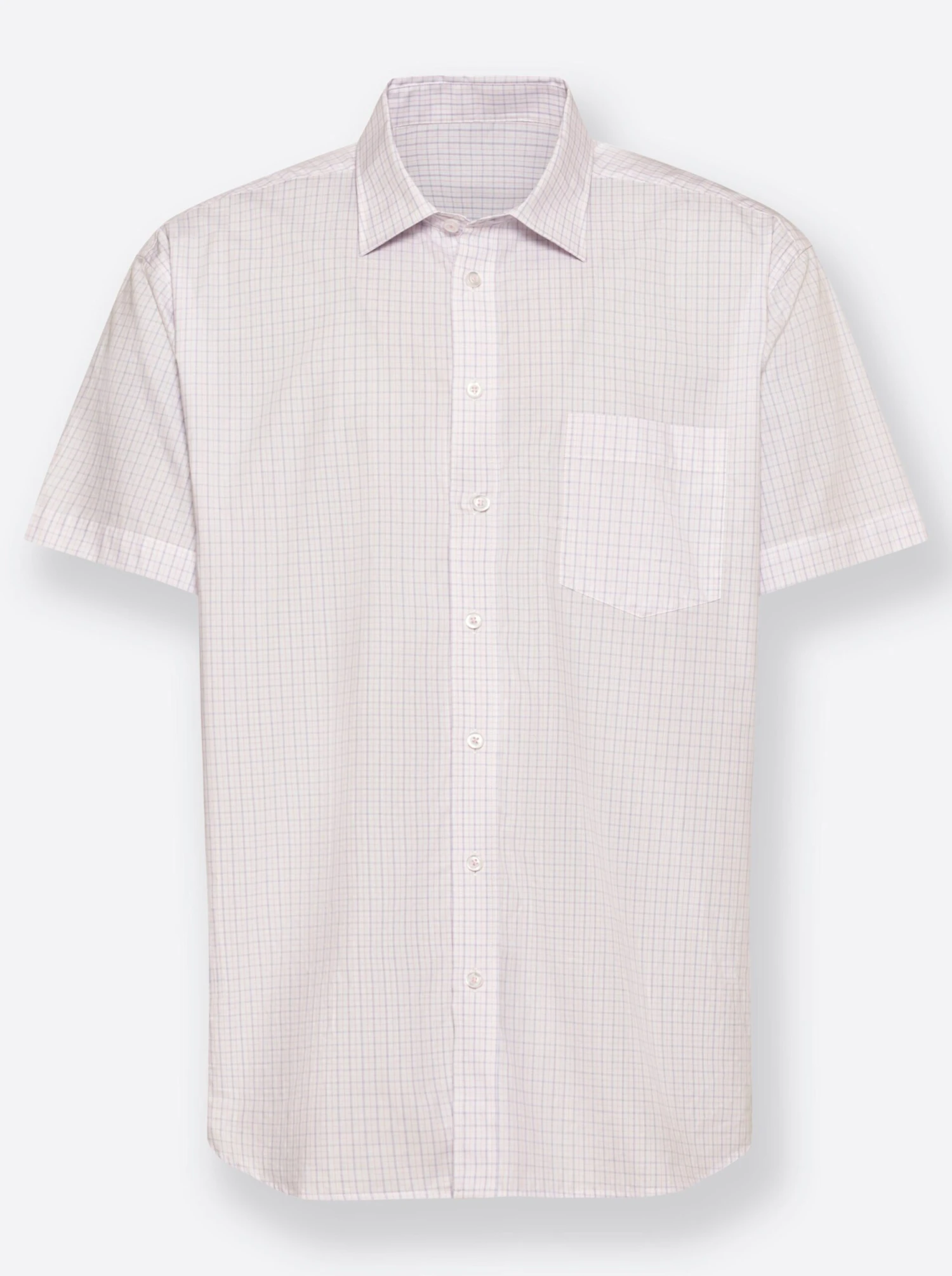 Kurzarm-Hemd – Weiß-rosé-kariert