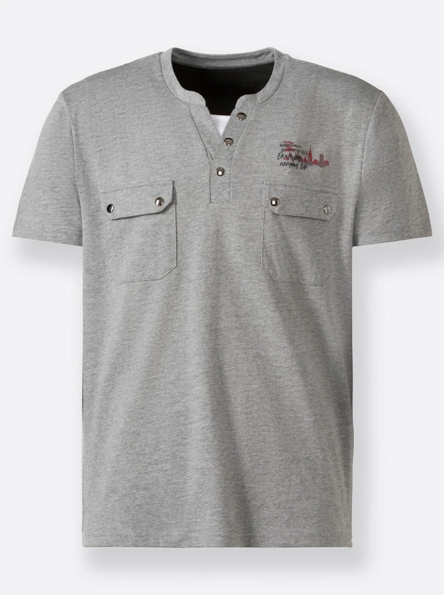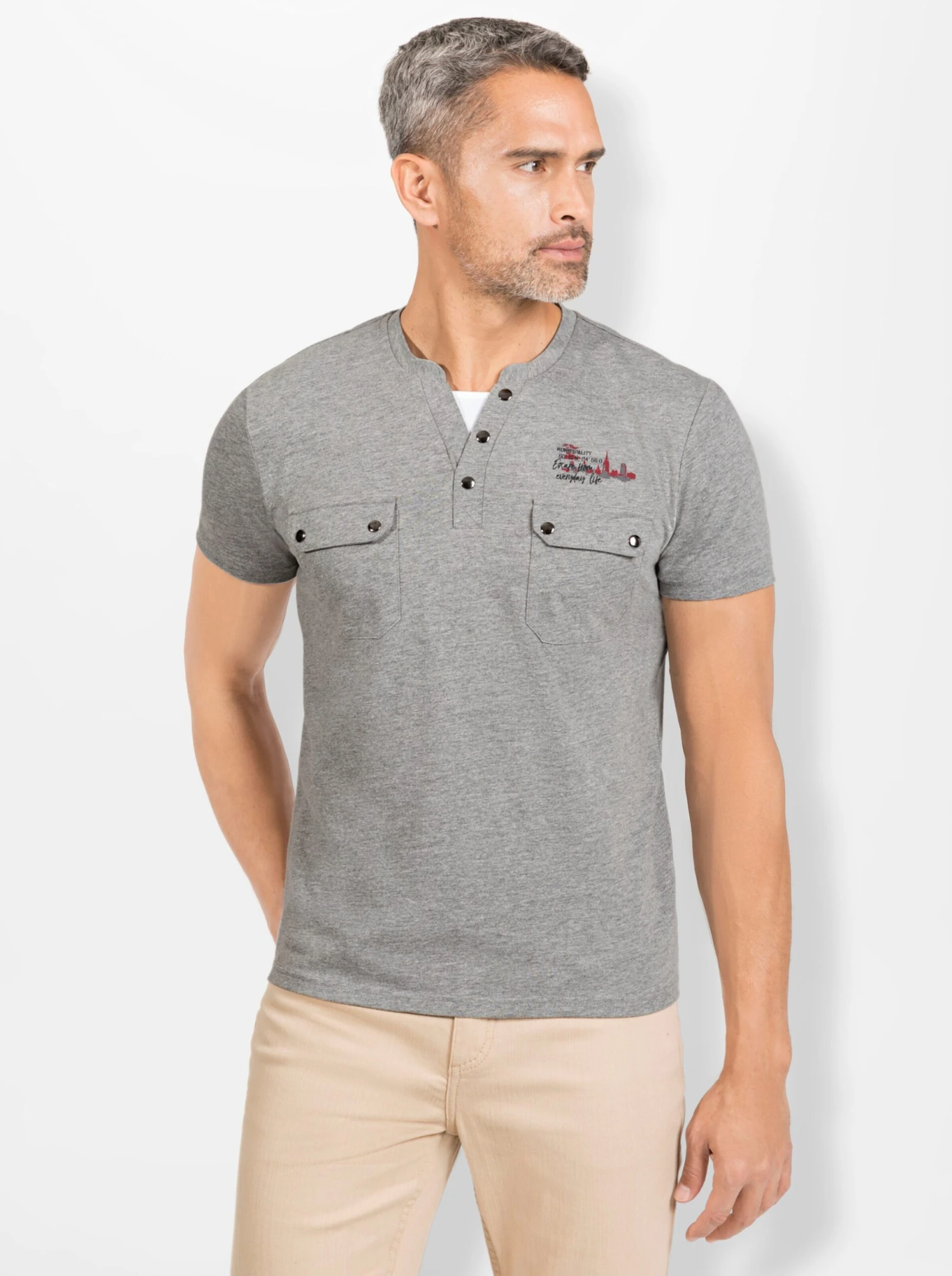 Mit vielen aktuellen Details verarbeitet: Das Kurzarm-Shirt von Catamaran hat Pep! Henley-Ausschnitt mit imitierter Knopfleiste, 2 Brusttaschen mit Druckknöpfen und kleiner Print im Vorderteil.