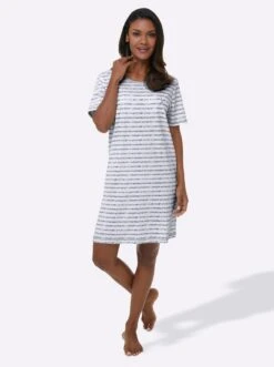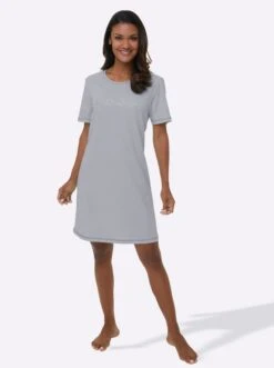Kurzarm-Sleepshirts – Grau + Grau-gestreift