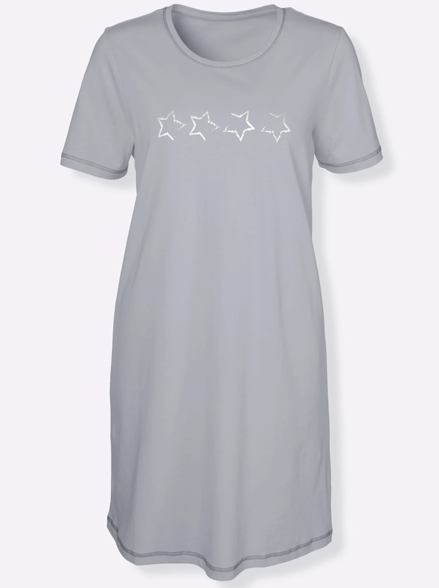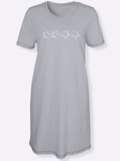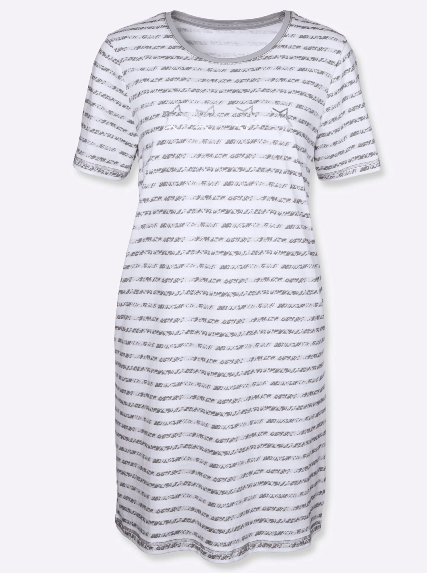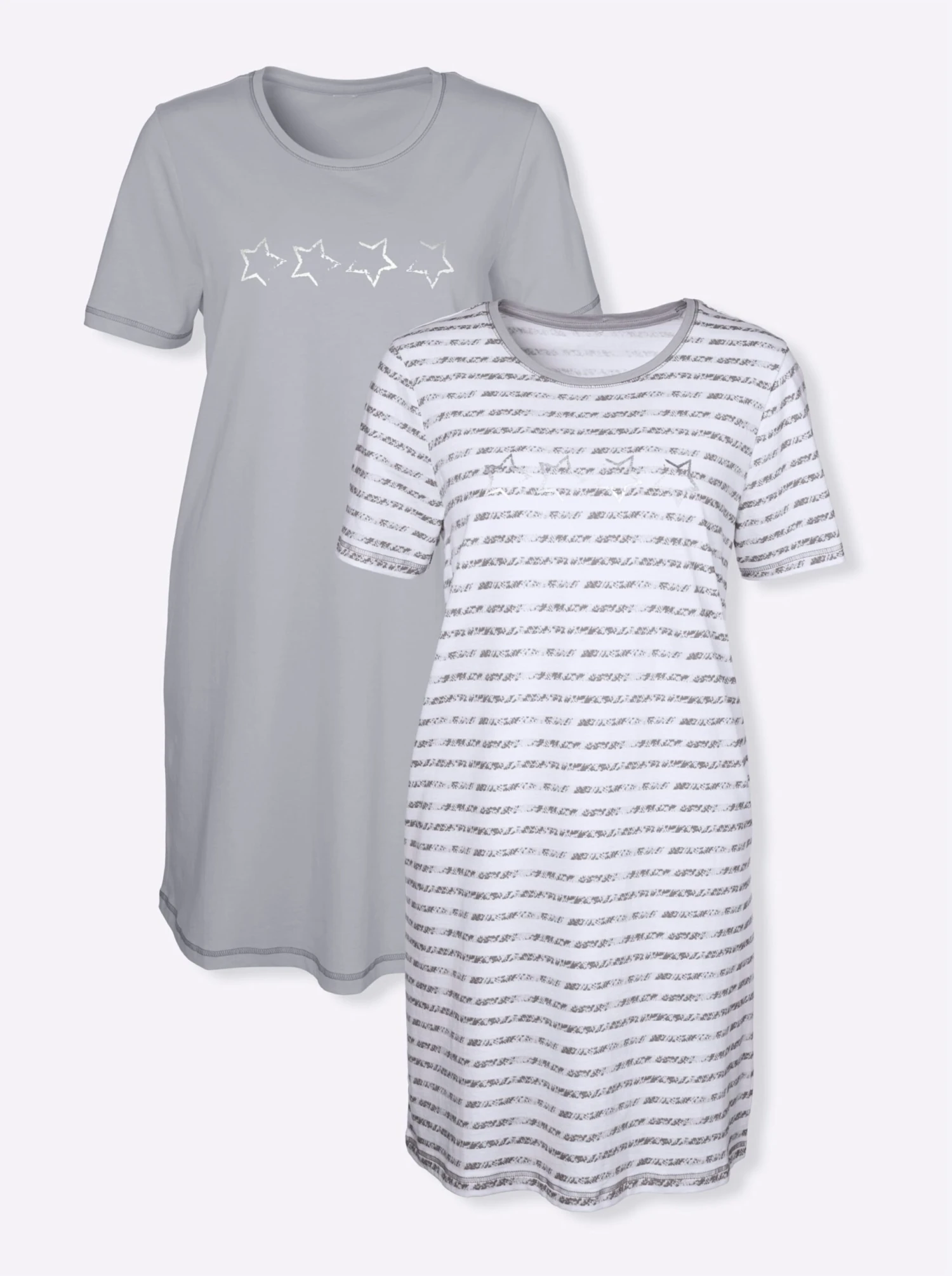 Kurzarm-Sleepshirts im Doppelpack: 1x quergestreift, 1x einfarbig. Mit kontrastfarbigem Rundhals-Ausschnitt. Hingucker sind die aufgedruckten, dezent glänzenden Sterne vorne. Flatlocknähte an Ausschnitt und Abschluss der kurzen Ärmel. In Single-Jersey-Qualität.