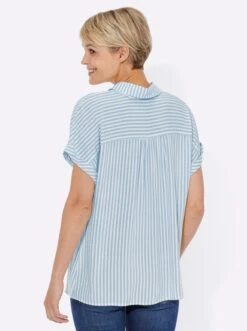 Kurzarmbluse – Eisblau-weiß-gestreift