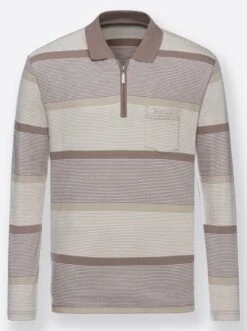 Aus reiner Baumwolle: Langarm-Poloshirt im hochwertig garngefärbtem Streifenmuster. Mit kurzem Reißverschluss am Polokragen. 1 Brusttasche. Gerade Abschlüsse.