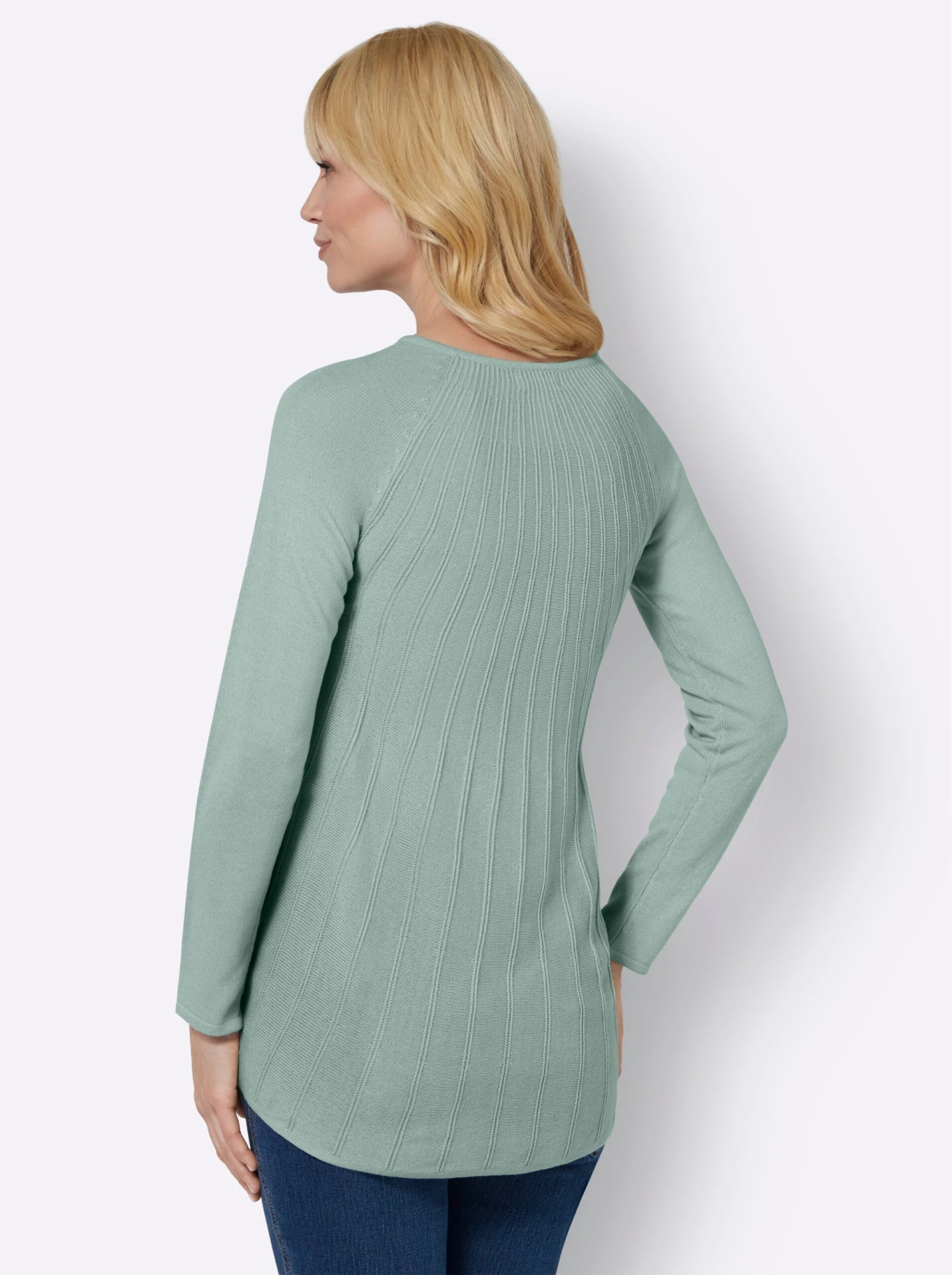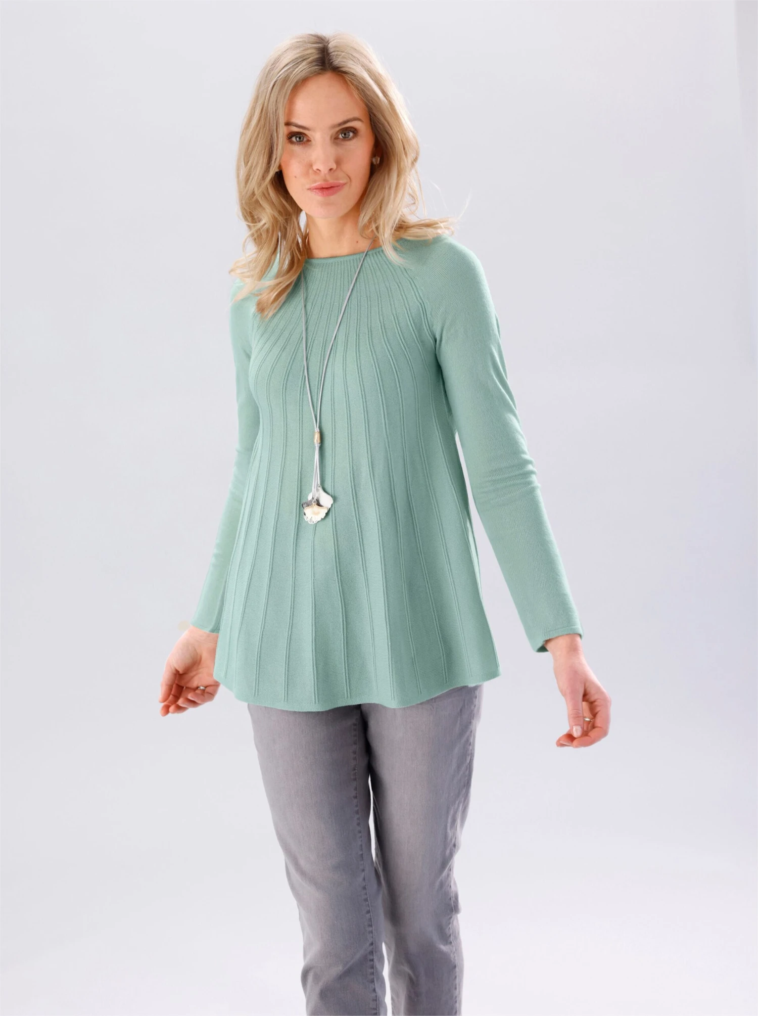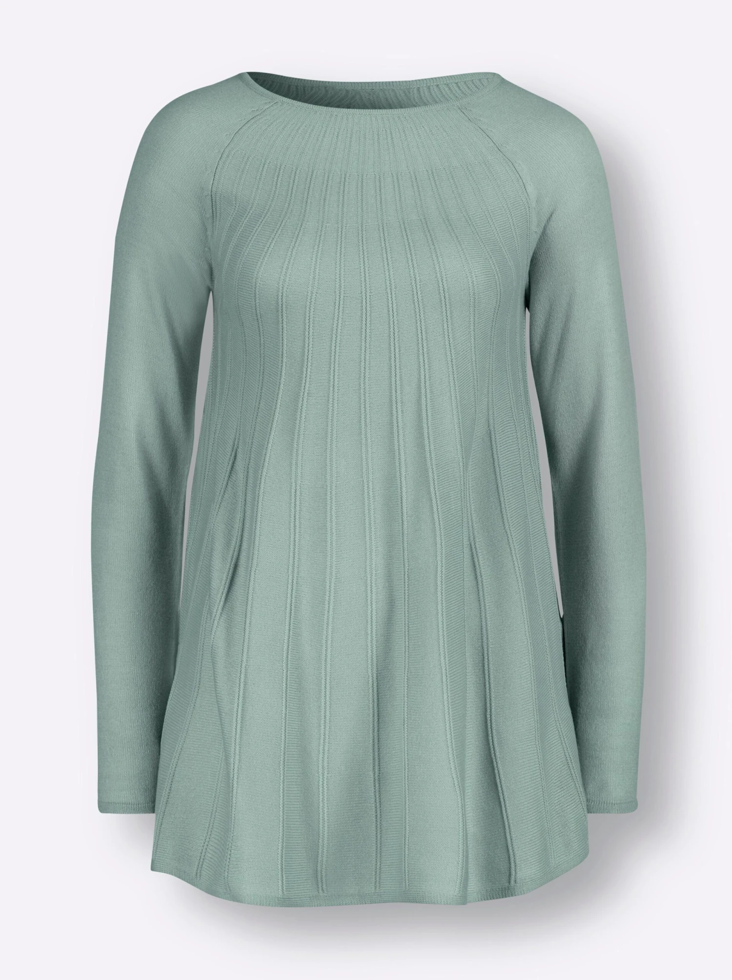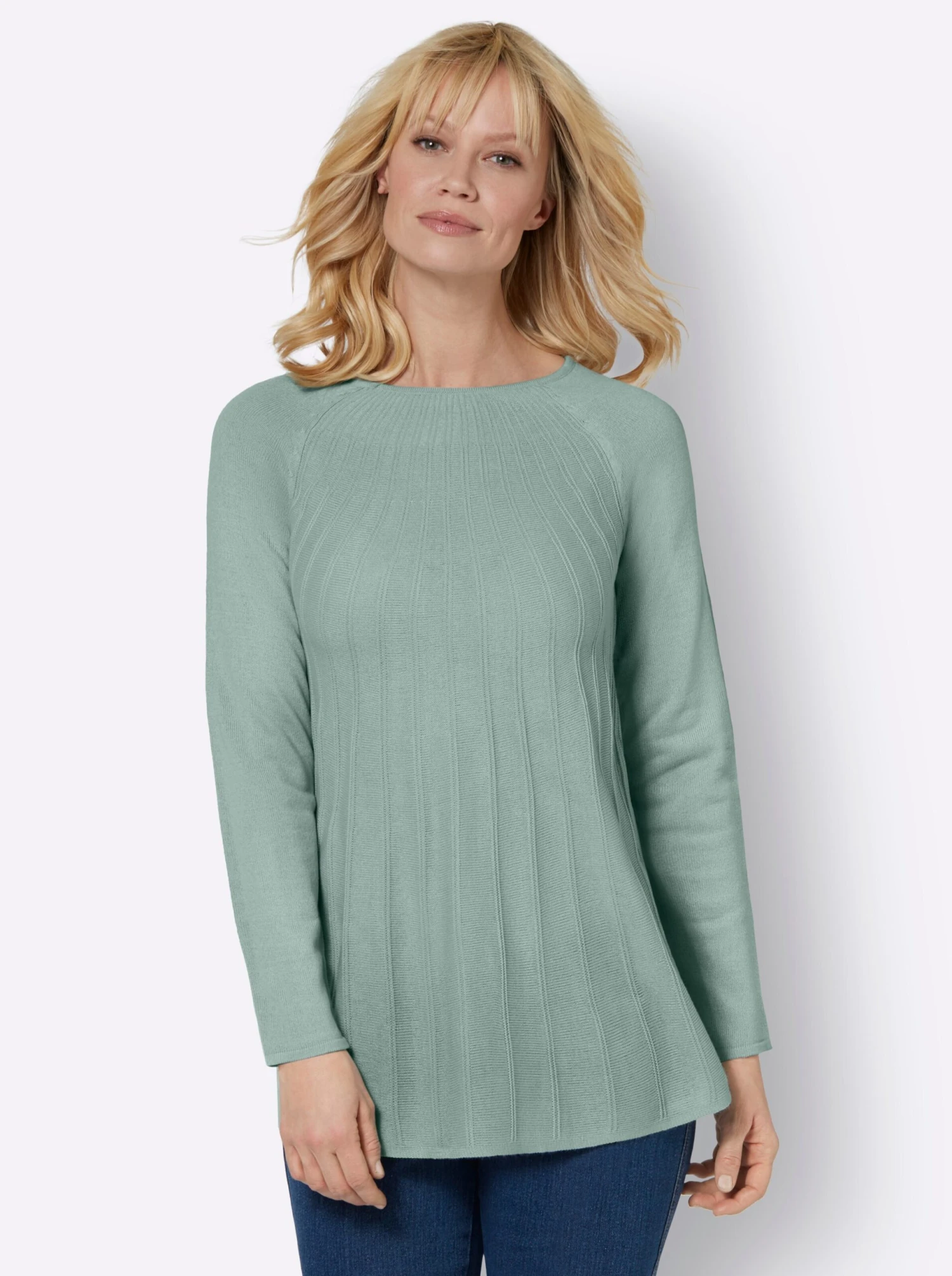 Wir sind uns sicher: Dieser Pullover wird Sie begeistern! In schmeichelnder A-Linie. Die Plissee-Optik entsteht durch die spezielle Strickart – sie verleiht dem Modell die moderne Ausstrahlung. Lange Raglan-Ärmel.