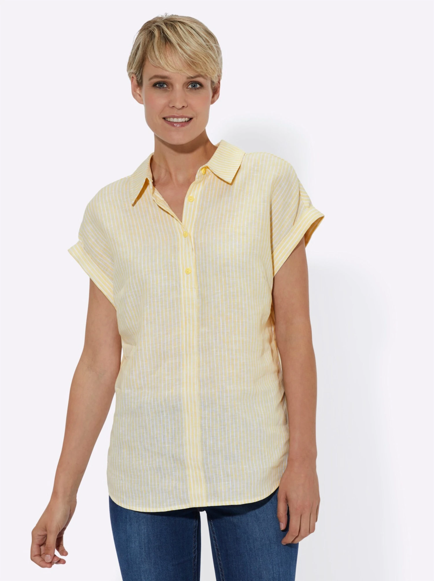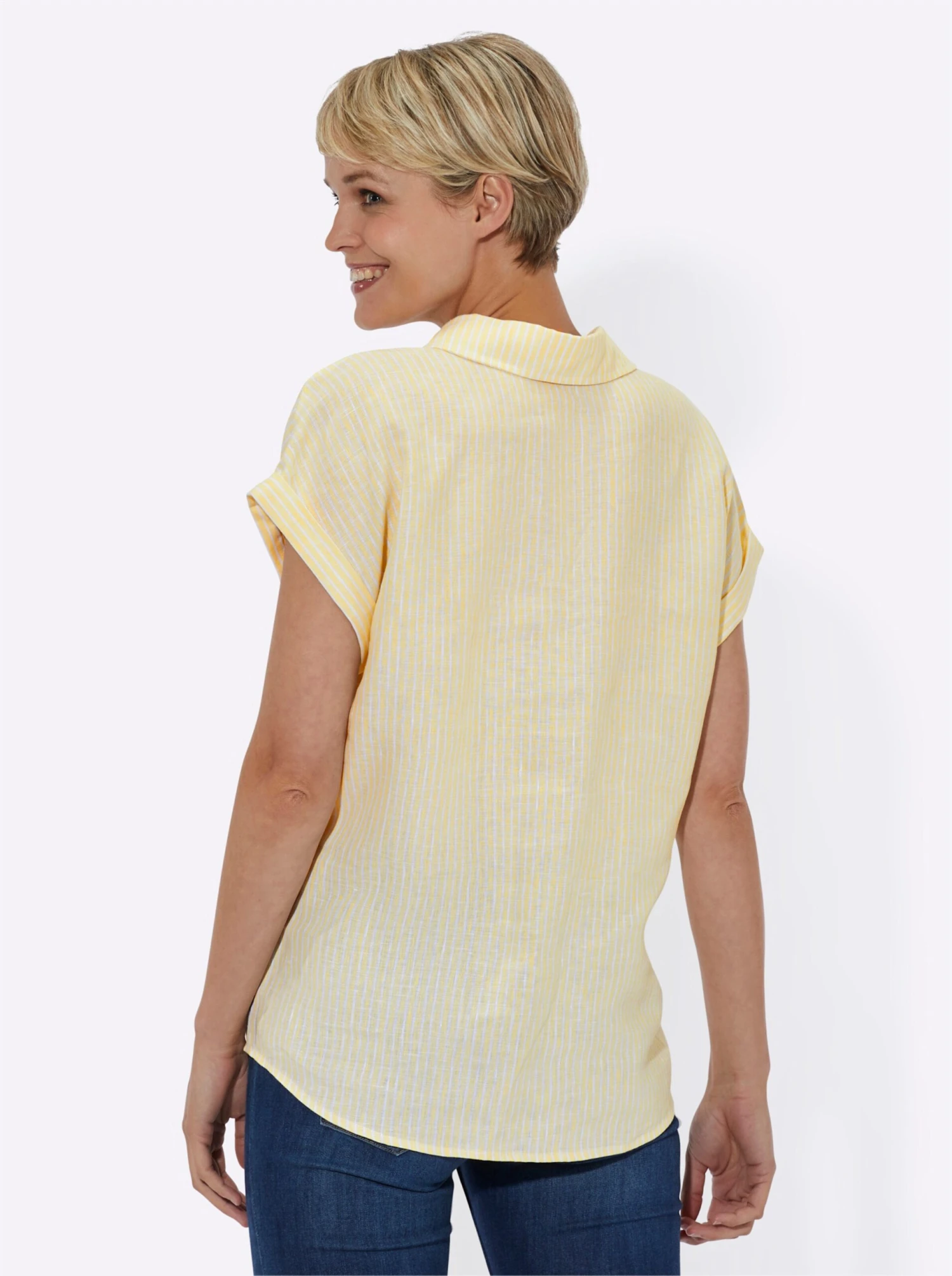 Leinenbluse – Zitrone-weiß-gestreift