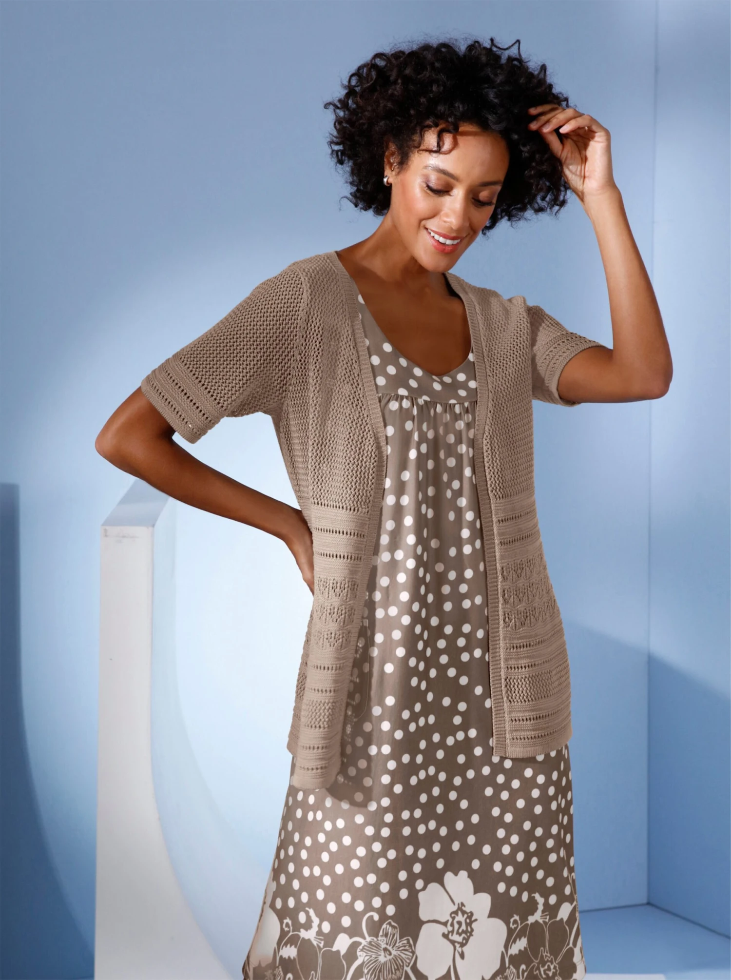 Lyocell-Strickjacke – Taupe