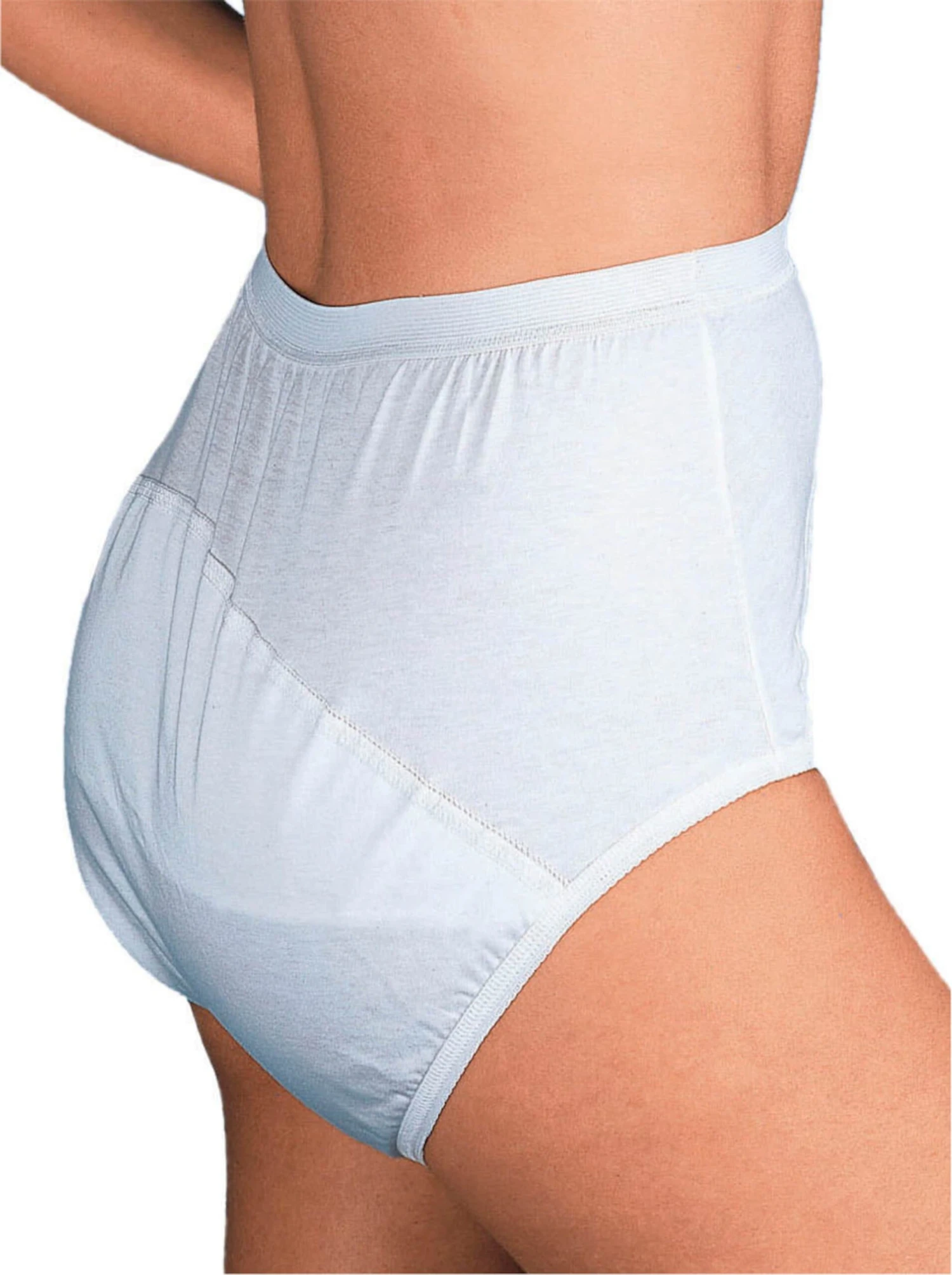 Medizinal-Schutzhose in Schlupfform für Blasen- und Darmschwäche. Öffnung für Vlieseinlage. Hautfreundlich und hygienisch durch Wäscheschutzfolie. 100% Baumwolle (Jersey). Kochfest.
