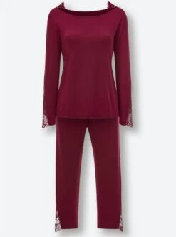 Der Modal-Schlafanzug verzaubert durch feinste, edel schimmernde MicroModal-Qualität, die leicht und unvergleichlich weich und sanft die Haut umschmeichelt. Seine romantische Ausstrahlung gewinnt er durch die kunstvolle, florale Spitze mit filigranem Wimpernabschluss seitlich am U-Boot-Ausschnitt und an den langen Ärmeln. Auch die lange Hose mit komfortablem Dehnbund schmückt die weiche Spitze am Saum.