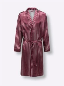 Innen ist dieser Morgenmantel schön weich angeraut, auf der Außenseite kommt edel glänzender Satin zum Tragen! Im Nadelstreifen-Dessin. Schalkragen mit ton-in-ton-farbiger Paspel, 2 Taschen und Bindegürtel. Länge ca. 115 cm. Von King’s Club.