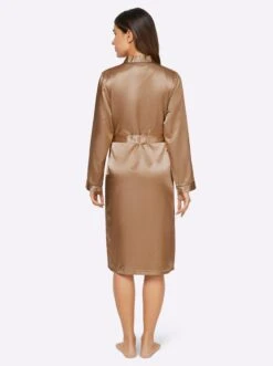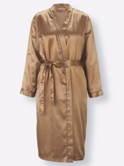 Morgenmantel aus Satin. In beliebter Kimonoform. 2 großzügige Taschen.