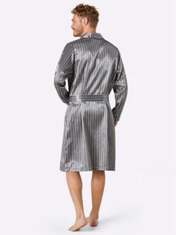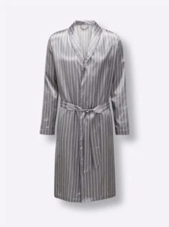 Innen ist dieser Morgenmantel schön weich angeraut, auf der Außenseite kommt edel glänzender Satin zum Tragen! Im Nadelstreifen-Dessin. Schalkragen mit ton-in-ton-farbiger Paspel, 2 Taschen und Bindegürtel. Länge ca. 115 cm. Von King’s Club.