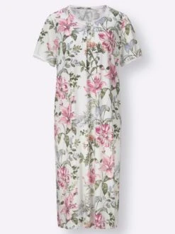 Wunderbar weiches Nachthemd von wäschepur im floralen Allover-Druck. Mit angesetztem Mesh am Rundhals-Ausschnitt mit vorteilhaft fallenden Falten und an den Abschlüssen der leicht gerafften Ärmel. Single-Jersey.