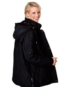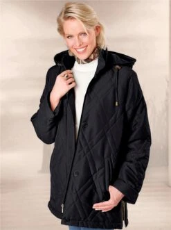 Warm wattierte Jacke. Microfaser-Qualität mit geschmeidig weichem Griff! Detailgenau verarbeitet mit abnehmbarer Kapuze mit Tunnelzug und Stoppern, schützendem Stehkragen, durch Knopfleiste verdecktem Reißverschluss, 2 Taschen, Ärmeln mit Aufschlag und Seitenschlitzen mit praktischem Reißverschluss.