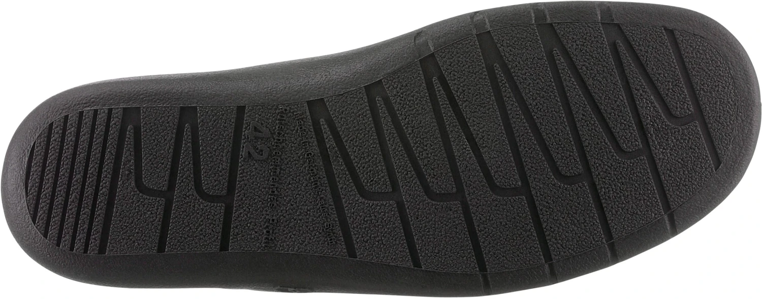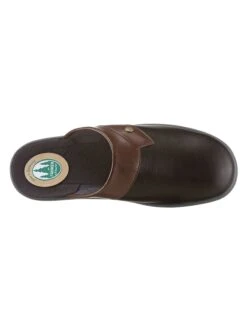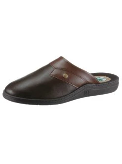 Pantoffel aus Leder. Mit Schurwolle im Flor gefüttert oder ungefüttert. Mit Fersendämpfung. Die Schurwolle sorgt für Wärme und trockene Füße. Weite G.