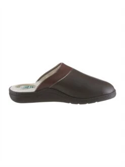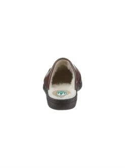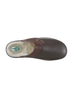 Pantoffel aus Leder. Mit Schurwolle im Flor gefüttert oder ungefüttert. Mit Fersendämpfung. Die Schurwolle sorgt für Wärme und trockene Füße. Weite G.
