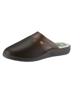 Pantoffel aus Leder. Mit Schurwolle im Flor gefüttert oder ungefüttert. Mit Fersendämpfung. Die Schurwolle sorgt für Wärme und trockene Füße. Weite G.