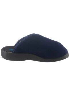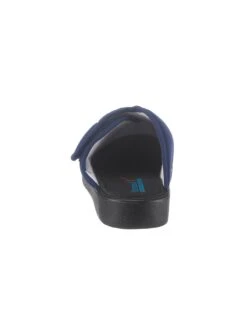 Pantoffel aus Veloursmaterial mit Nano-Imprägnierung. Mit 2 Klettverschlüssen. Moltopren-Zwischenfutter und Frotteefutter aus 80% Baumwolle, 20% Polyamid mit Silberionen. 6 mm Weichschaumfußbett mit Coolmax-Bezug. Weite L. Fällt klein aus – bitte eine Nummer größer bestellen.