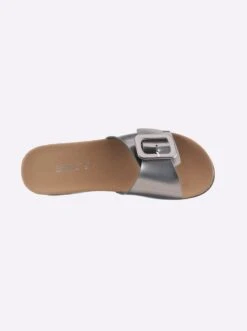 Schicke Pantolette für Sie! Mit Keilabsatz (Absatzhöhe ca. 5 cm) in Kork-Optik und dekorativer Schließe – so kann er individuell in der Weite verstellt werden. Obermaterial Synthetik.