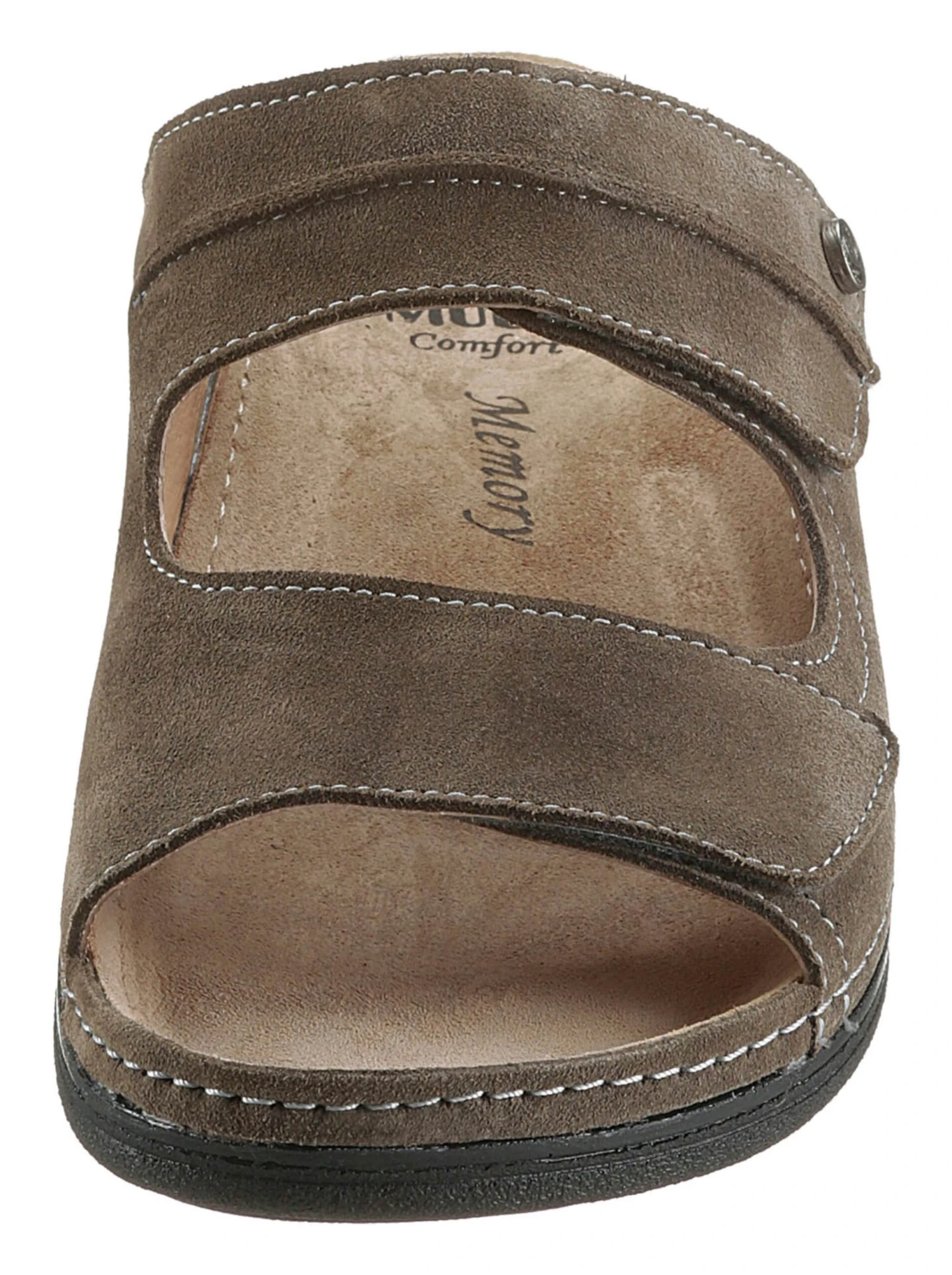 Pantolette von Mubb in bequemer Ausführung. Aus Veloursleder. Praktisch mit Klettverschluss. Innenausstattung aus Leder. Weich gepolstert. Mit Memory-Fußbett. Laufsohle aus PU. Rutschhemmend. Antishock für einen angenehm weichen Auftritt. Für den kräftigen Fuß. Weite H.