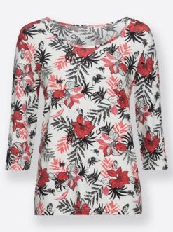 Zum Verlieben schön: Das Druck-Shirt mit Rundhals-Ausschnitt und 3/4-Ärmeln begeistert mit einem attraktiven Blüten-Dessin. Aus weich fließender Qualität zum Wohlfühlen.