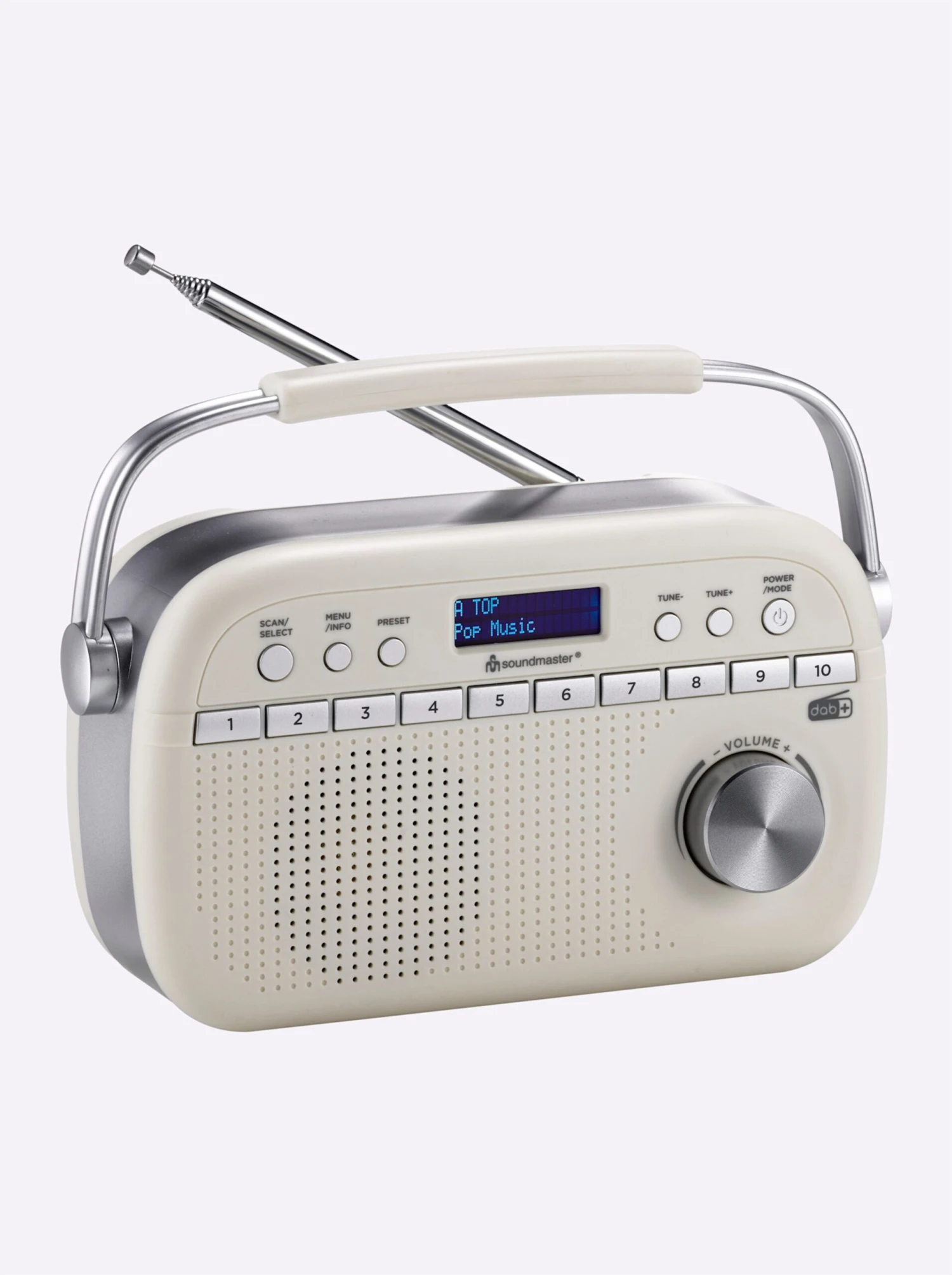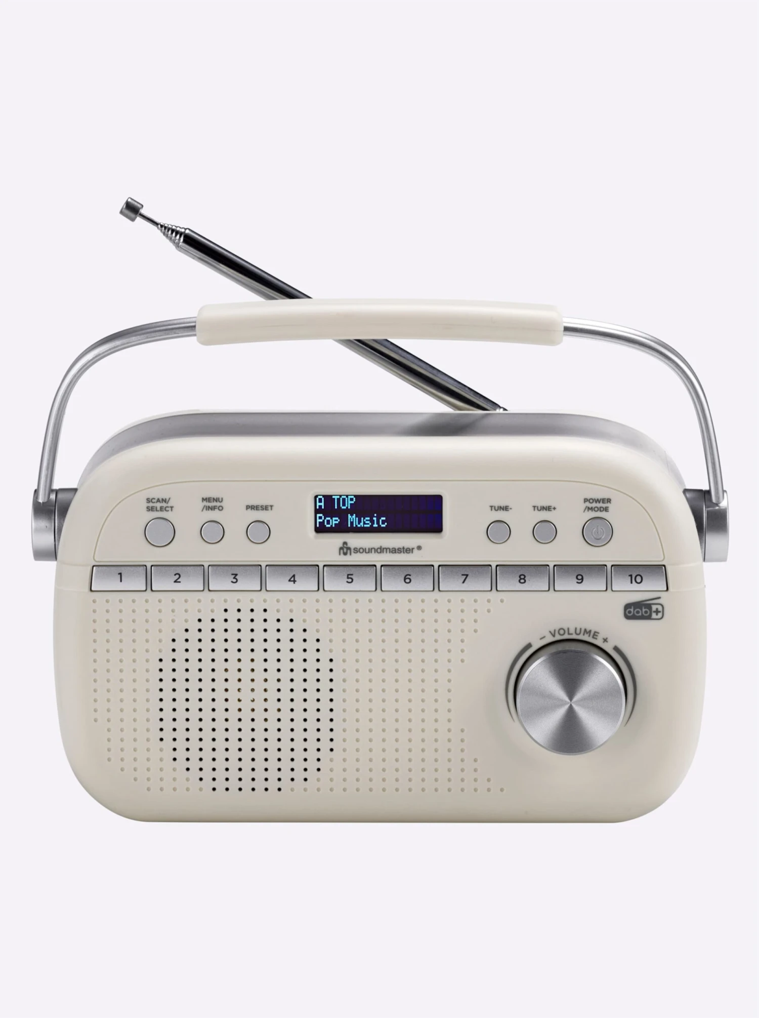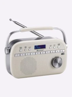 Radio DAB+ und UKW-PLL Digitalradio mit RDS. LCD-Anzeige, 10 Stationstasten, 2 Alarmzeiten, Einschlaf- und Schlummerfunktion, Kopfhörerbuchse und Teleskopantenne. Netzbetrieb AC 230V ~ 50Hz und Batteriebetrieb 3x 1,5V LR14/C. Inklusive Netzteil. Ohne Batterien.