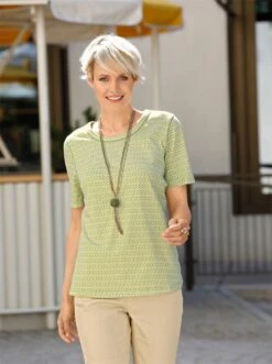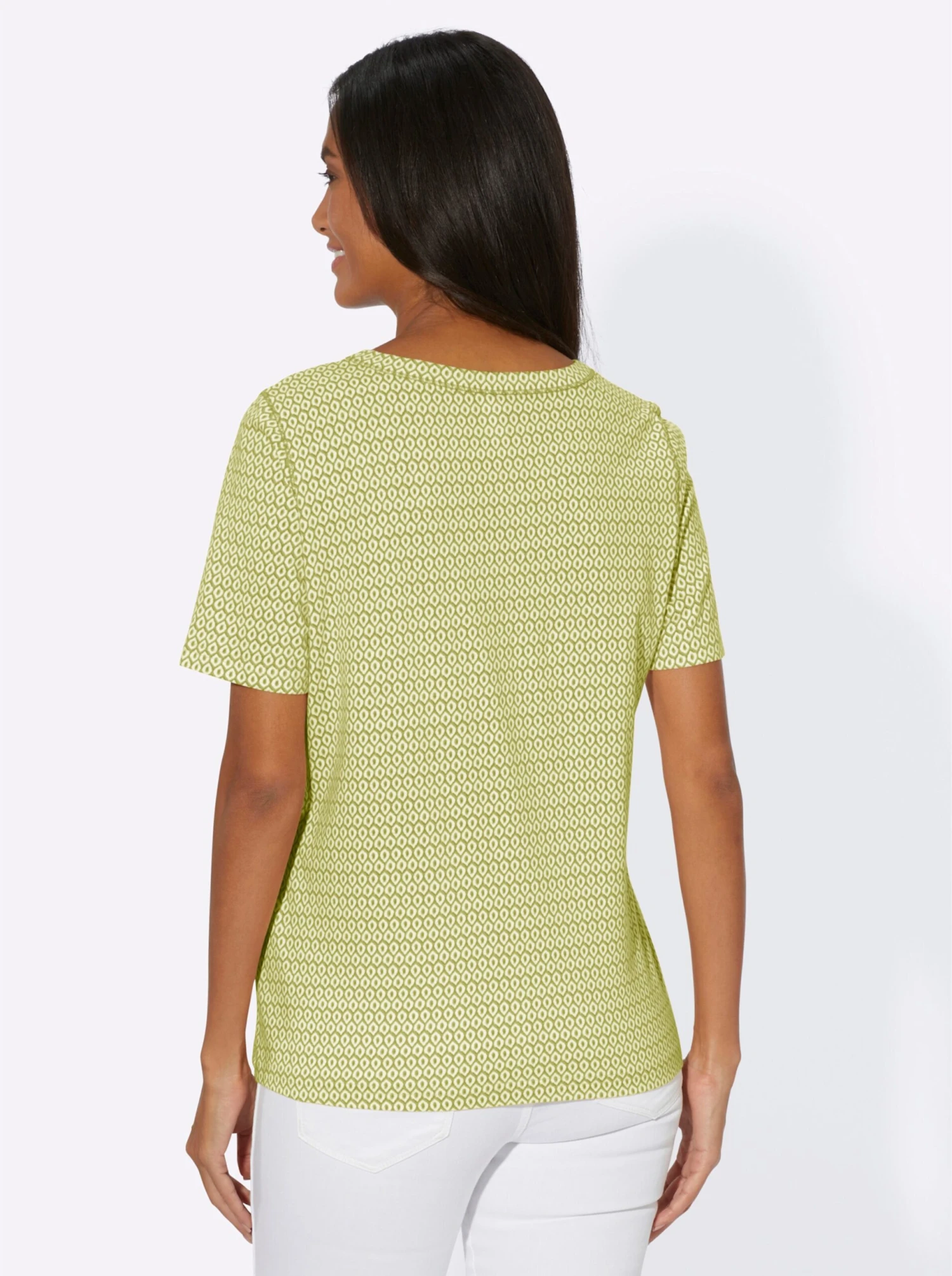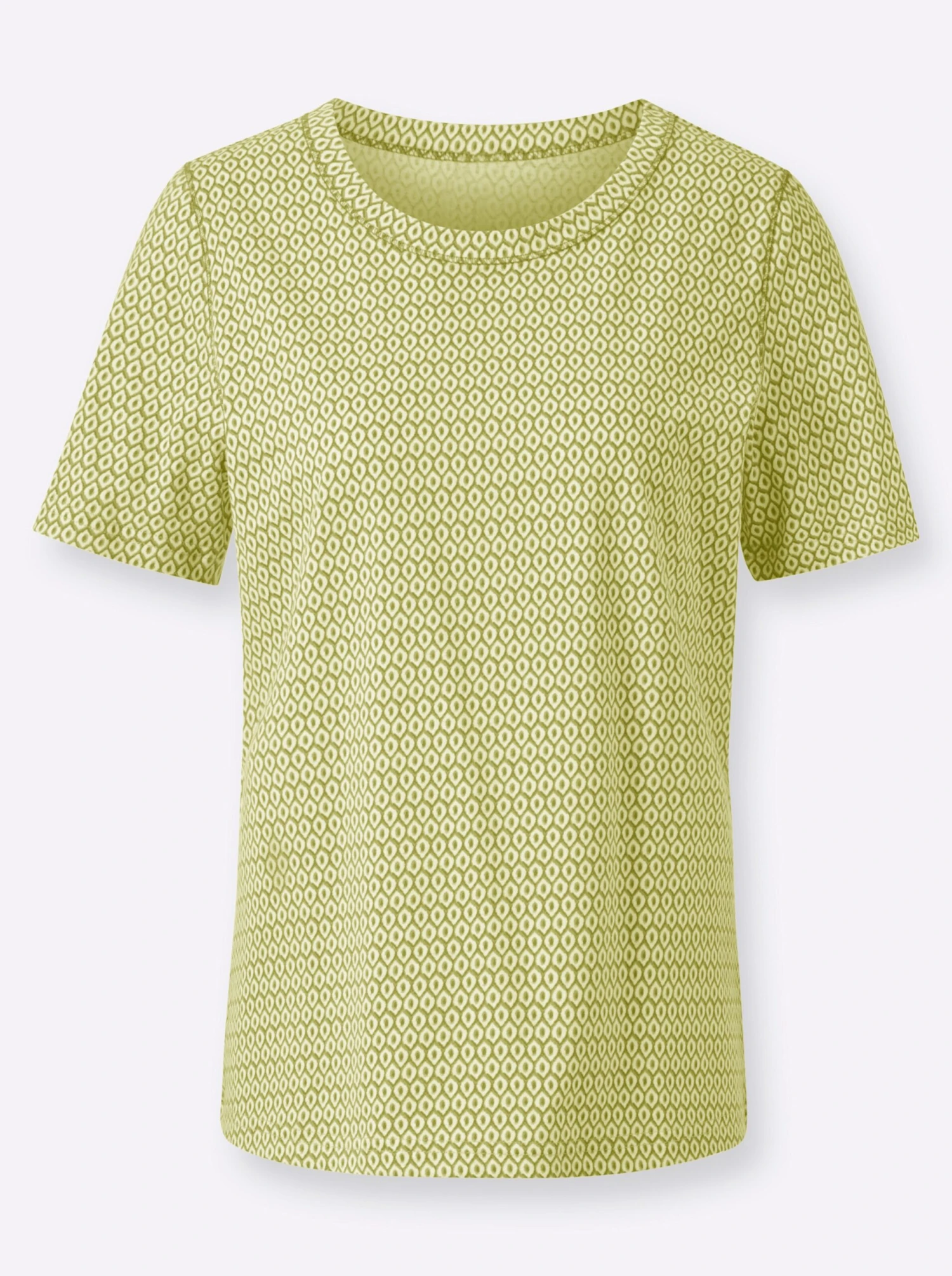 Grafisch bedrucktes Shirt in trageangenehmer Single-Jersey-Qualität aus reiner Baumwolle. Aufwändig gearbeitet mit dekorativen Ziernähten am Rundhals-Ausschnitt mit Beleg und an den kurzen Ärmeln.