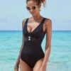 Tankini von s.Oliver RED LABEL Beachwear mit wunderschönem Bordürendruck. Top in aktueller, figurfreundlicher Oversize-Form: etwas weiterer Schnitt mit anliegendem Bündchen. Eingearbeitete Softcups, bis D-Cup geeignet. Unterbrustgummi rundum und Miedereinsatz im Cupbereich und oberem Rücken. Verstellbare Träger.
