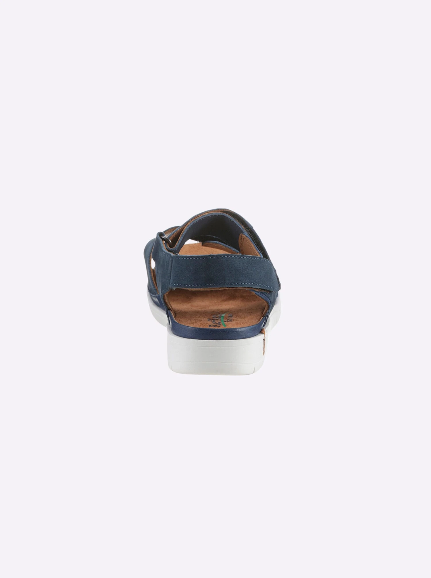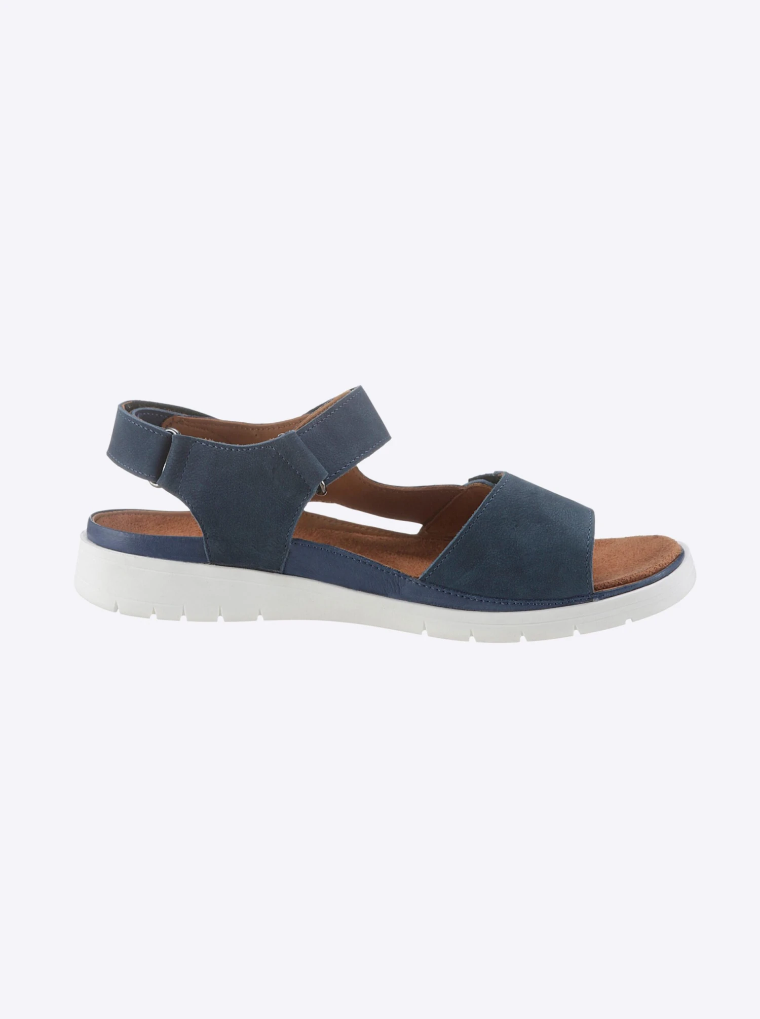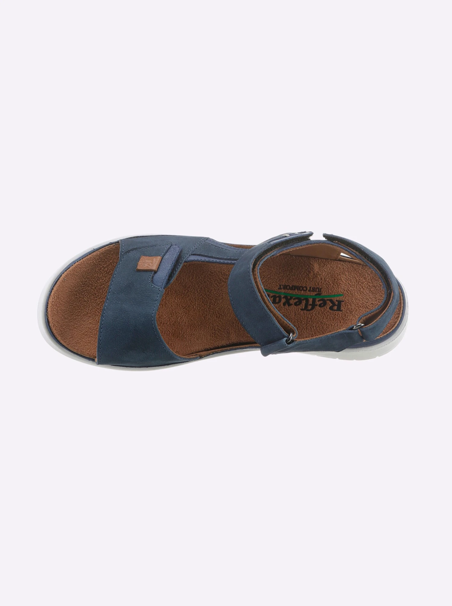 Federleicht, weich gepolstert und mit einem praktischen Klettverschluss ausgestattet: Die Sandale von Reflexan ist ein echter Lieblingsschuh. Obermaterial aus Nubukleder mit Glattleder, Innenausstattung aus Leder und Textil. Flexible, rutschhemmende TR-Laufsohle mit ca. 25 mm Absatz. Weite G.