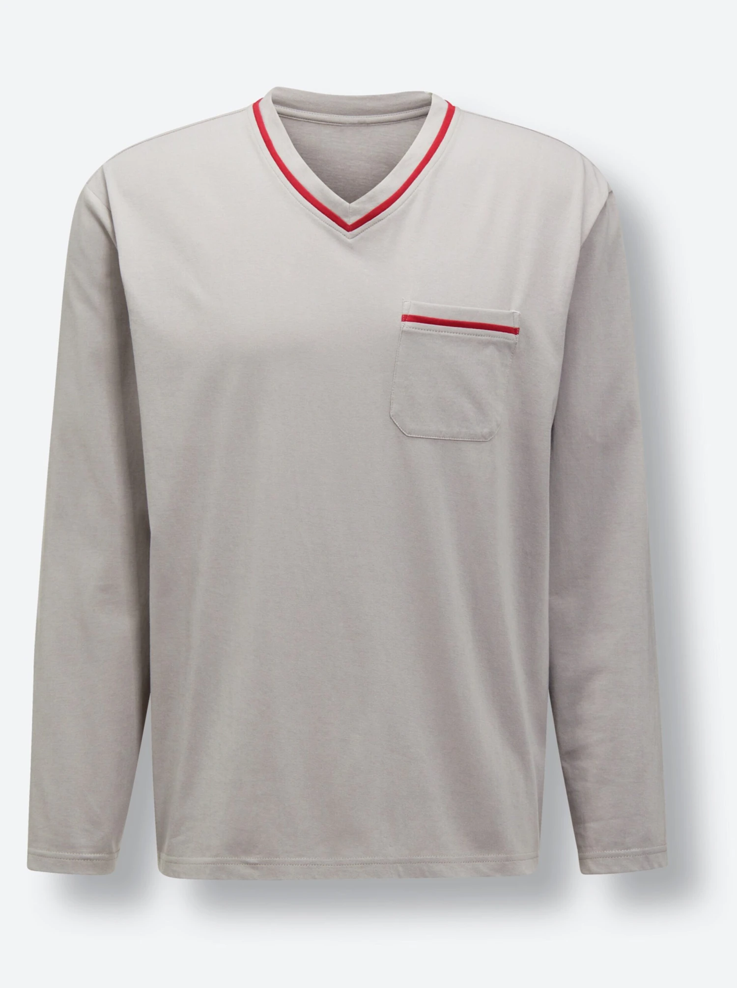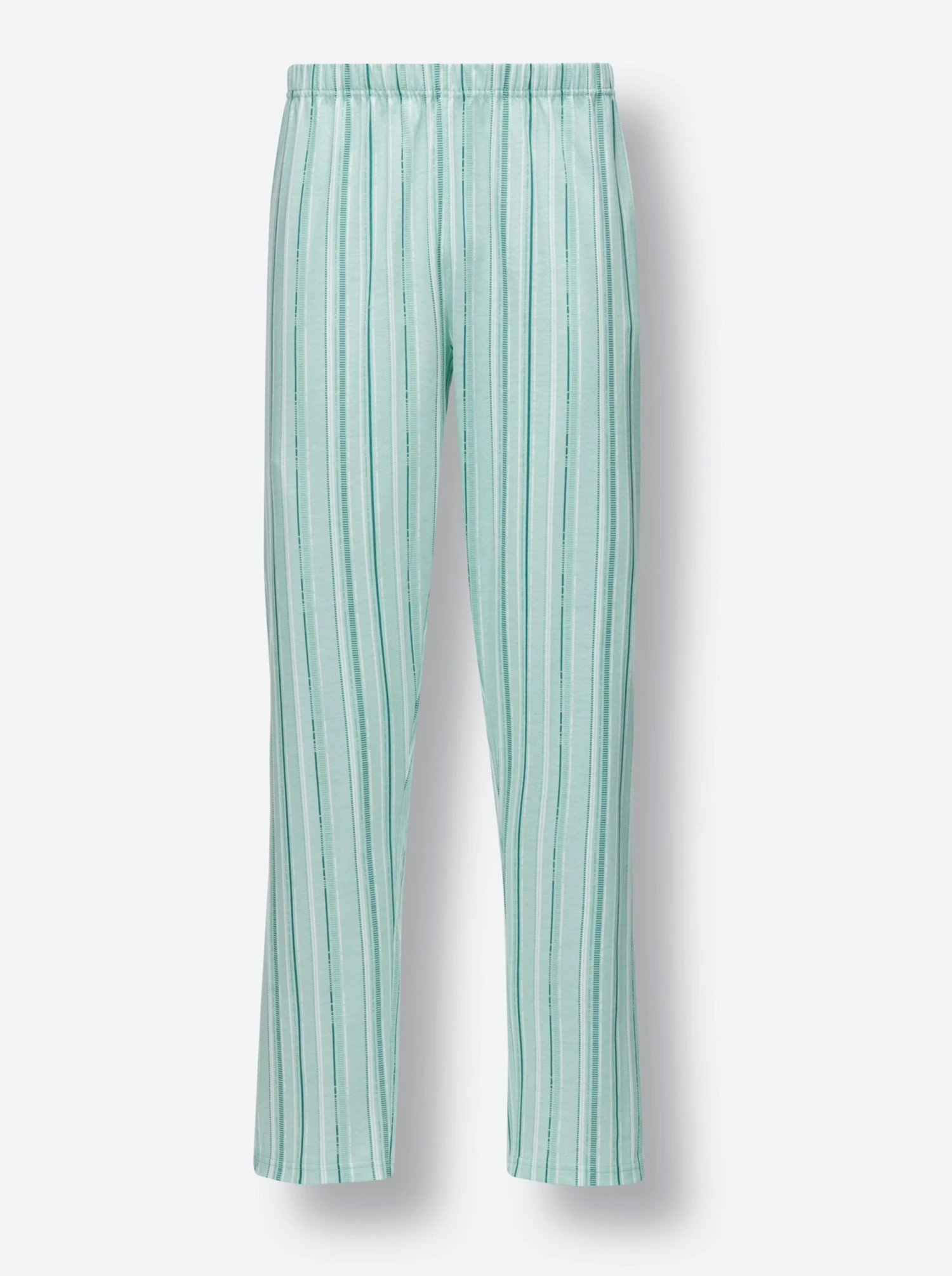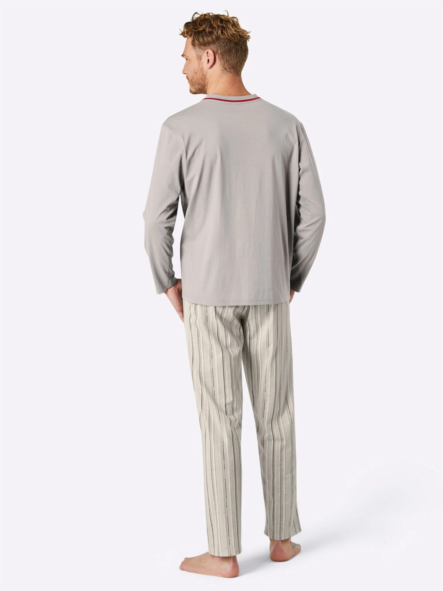 Bequemlichkeit pur im preiswerten Doppelpack: Schlafanzüge in angenehm weicher Single-Jersey-Qualität. Kontrastfarbige Paspelierung am V-Ausschnitt und an der Brusttasche. Gestreifte Hose mit Dehnbund.