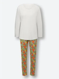 Auf Streifzug durch die Nacht: Der Schlafanzug ist ein echter Wohlfühl-Partner. Modische Galonstreifen. Rundhals-Ausschnitt und Ärmel schön verziert mit Mesh-Einsatz. Allover bedruckte, lange Hose mit Dehnbund. In Single-Jersey-Qualität.