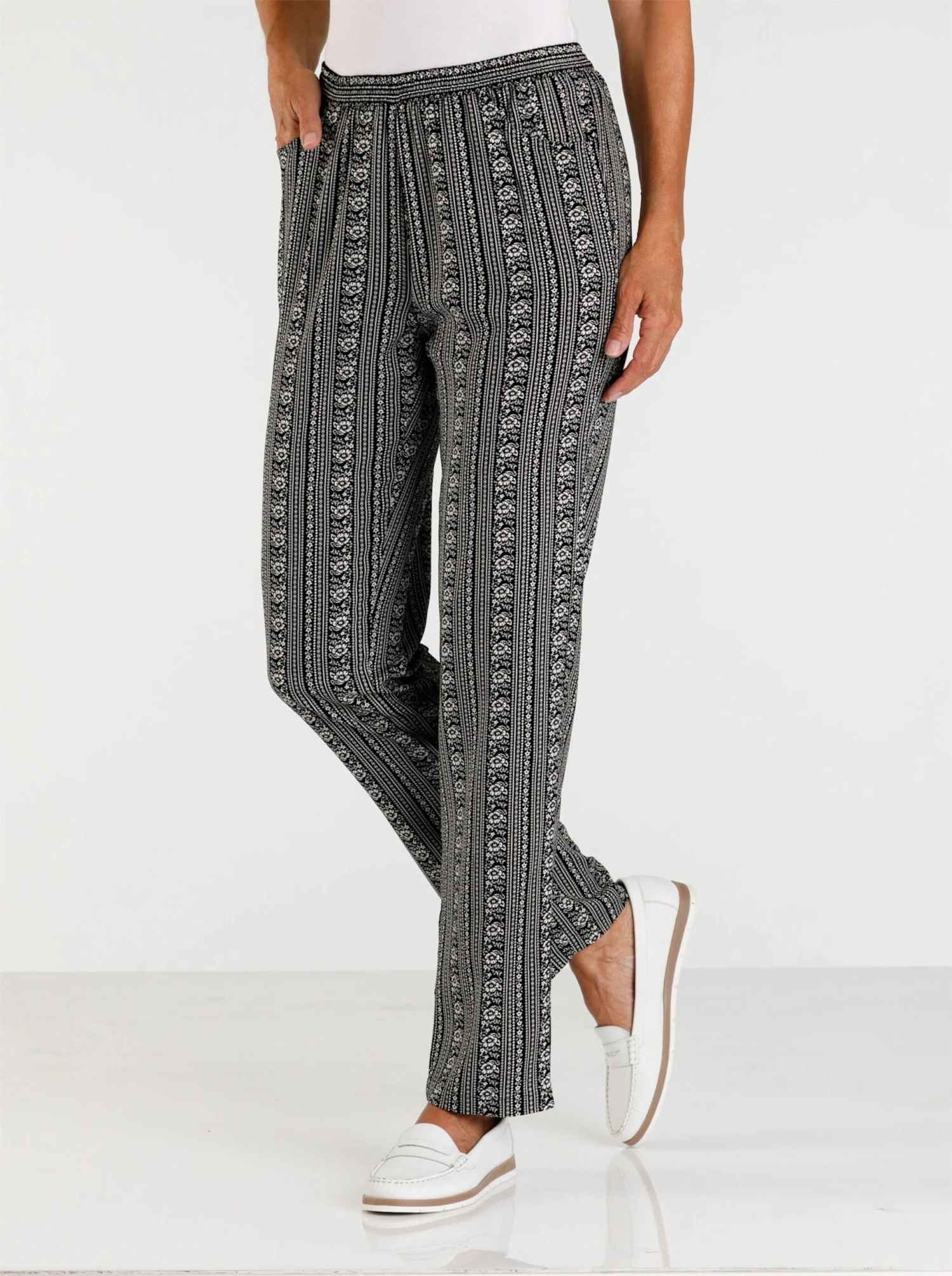 Superleicht in neuen Dessins, und trageangenehm: unsere beliebte Hose in nachhaltiger Viskose-Qualität. Mit bequemem Rundum-Dehnbund und seitlichen Taschen. Fußweite: ca. 40 cm.