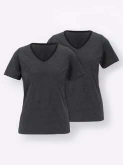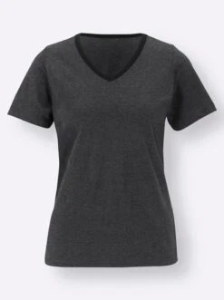 Zwei Stück in der Packung: Shirt mit kontrastfarbigem V-Ausschnitt und kurzen Ärmeln. Die innen weich angeraute Interlock-Qualität macht es so trageangenehm.