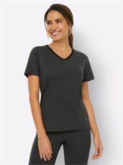 Zwei Stück in der Packung: Shirt mit kontrastfarbigem V-Ausschnitt und kurzen Ärmeln. Die innen weich angeraute Interlock-Qualität macht es so trageangenehm.