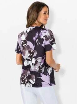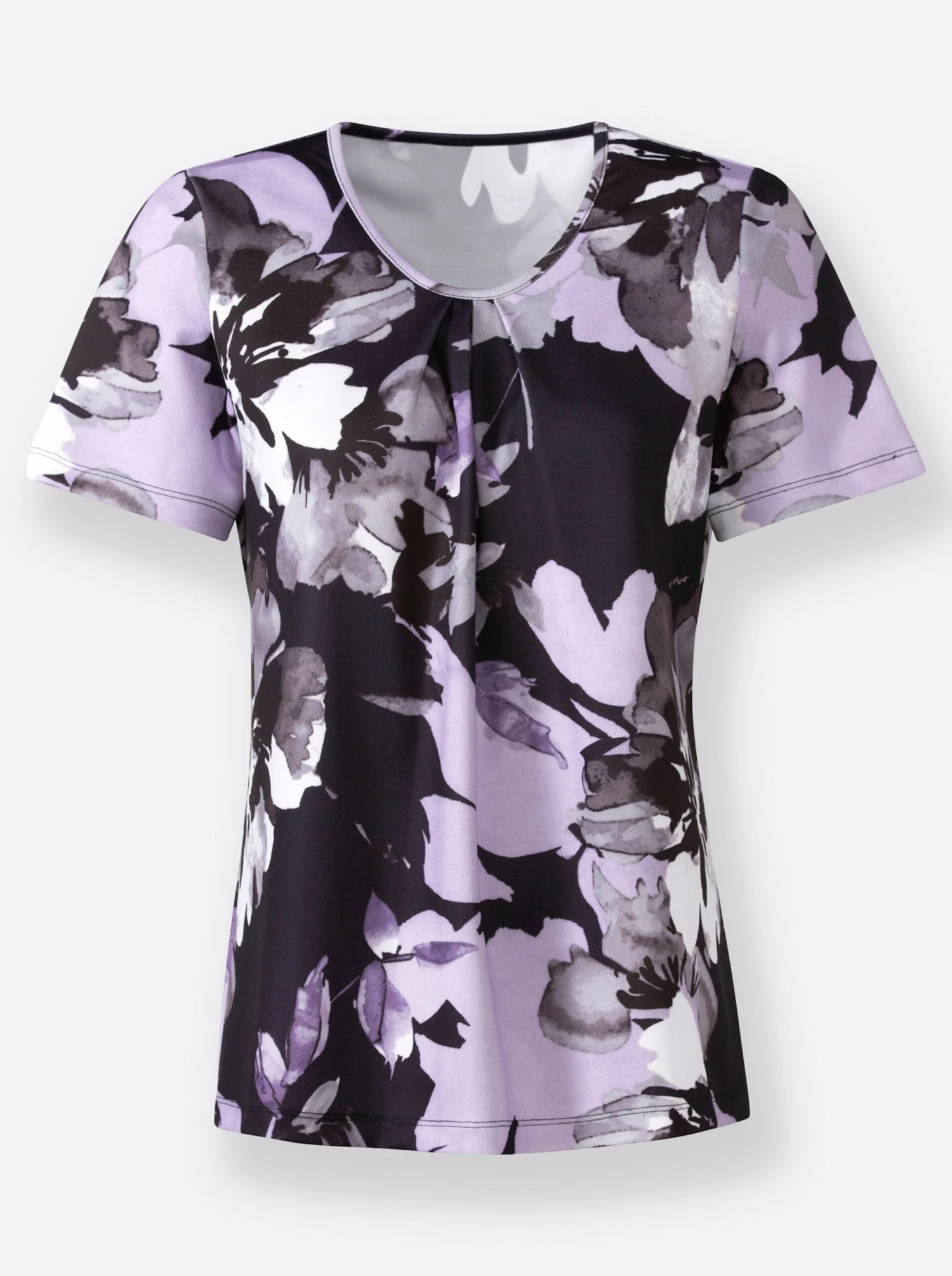 Mit schmeichelnden Falten am Ausschnitt: Shirt im opulenten Blütendessin. In leichter A-Linie. Gerader Saum.