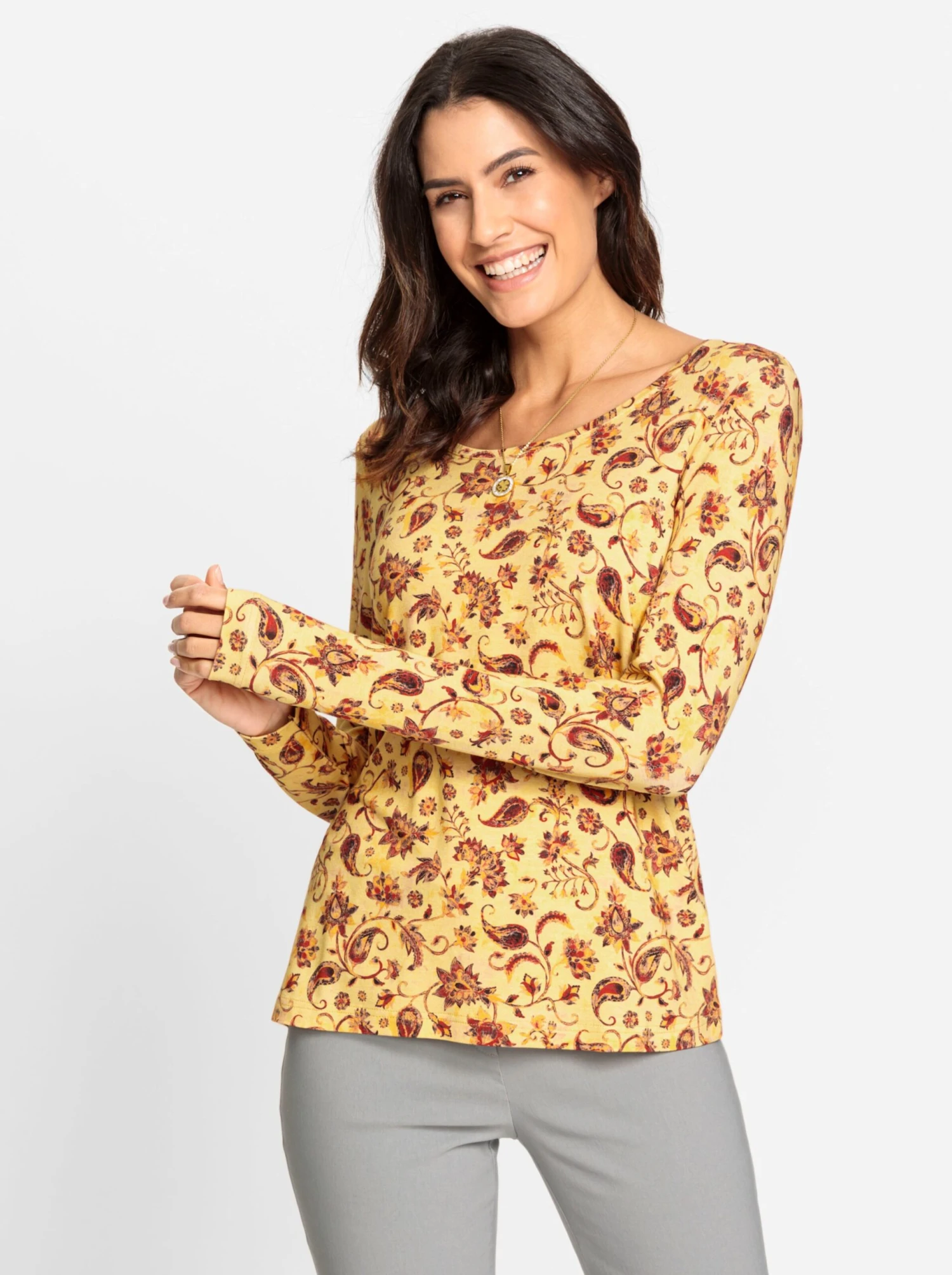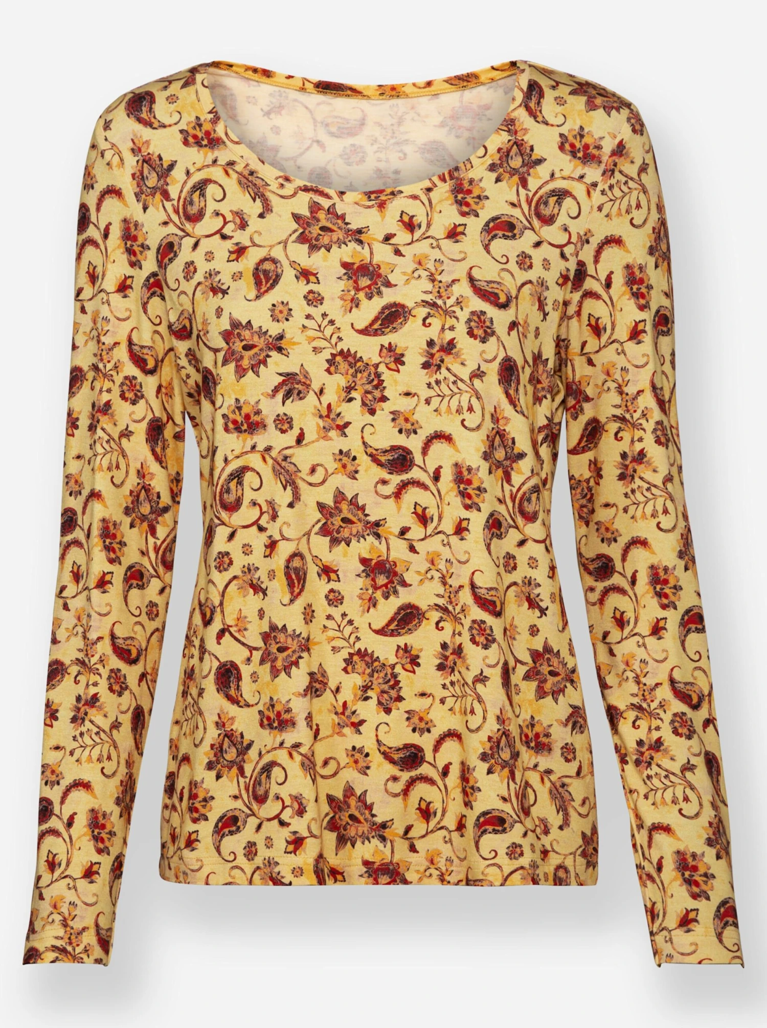Der florale Druck mit Paisley-Elementen kommt bei diesem Shirt auf der weich fließenden, elastischen Viskose-Qualität besonders gut zur Geltung. Lange Ärmel.