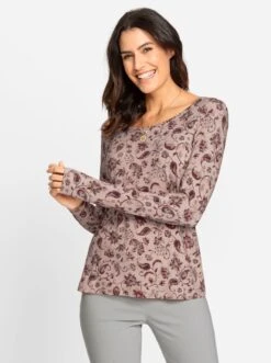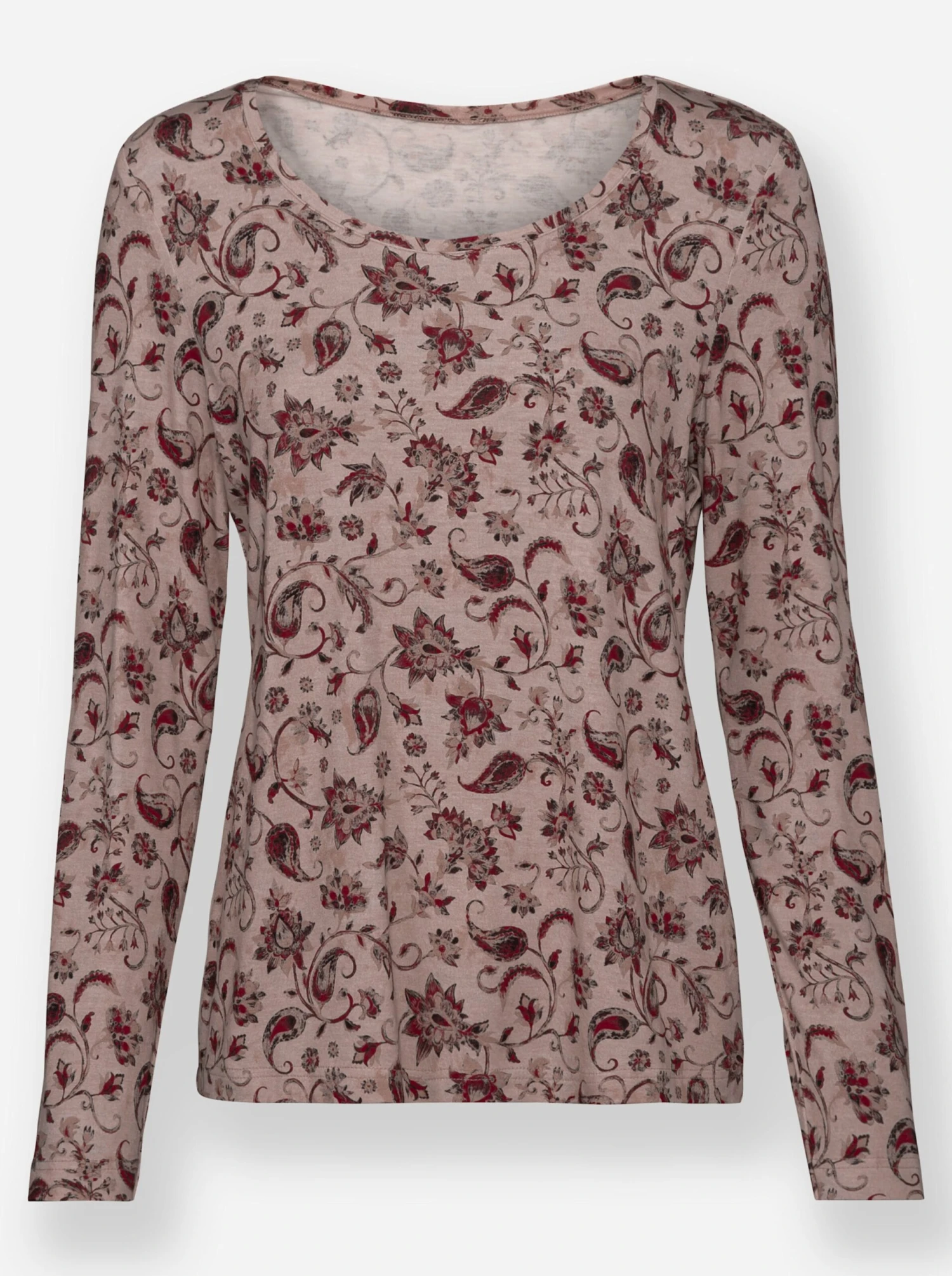 Der florale Druck mit Paisley-Elementen kommt bei diesem Shirt auf der weich fließenden, elastischen Viskose-Qualität besonders gut zur Geltung. Lange Ärmel.