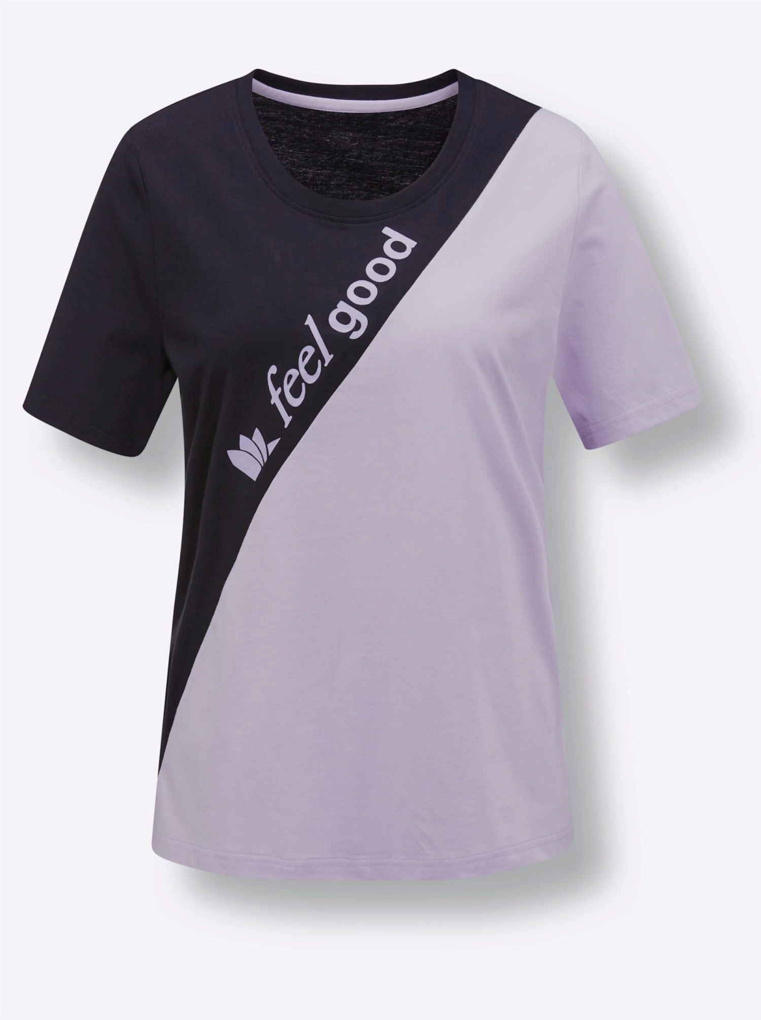 Sportiv zweifarbiges Shirt von feel good mit Logo-Druck vorne. In trageangenehmem Baumwoll-Mix – unterstützt die Cotton made in Africa-Initiative. Single-Jersey.