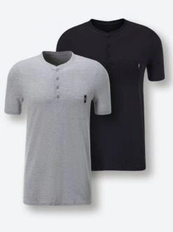 Shirts im Doppelpack von wäschepur MEN! Mit Rundhals-Ausschnitt, Knopfleiste, Brusttasche und halblangen Ärmeln. Aus weichem Single-Jersey.