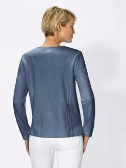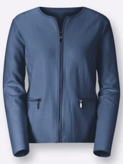 Jersey-Blazer in aktueller Rippoptik. Schön gearbeitet mit paspeliertem Rundhals-Ausschnitt, formgebenden Nähten, durchgehendem Reißverschluss und 2 Reißverschluss-Taschen.