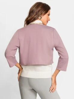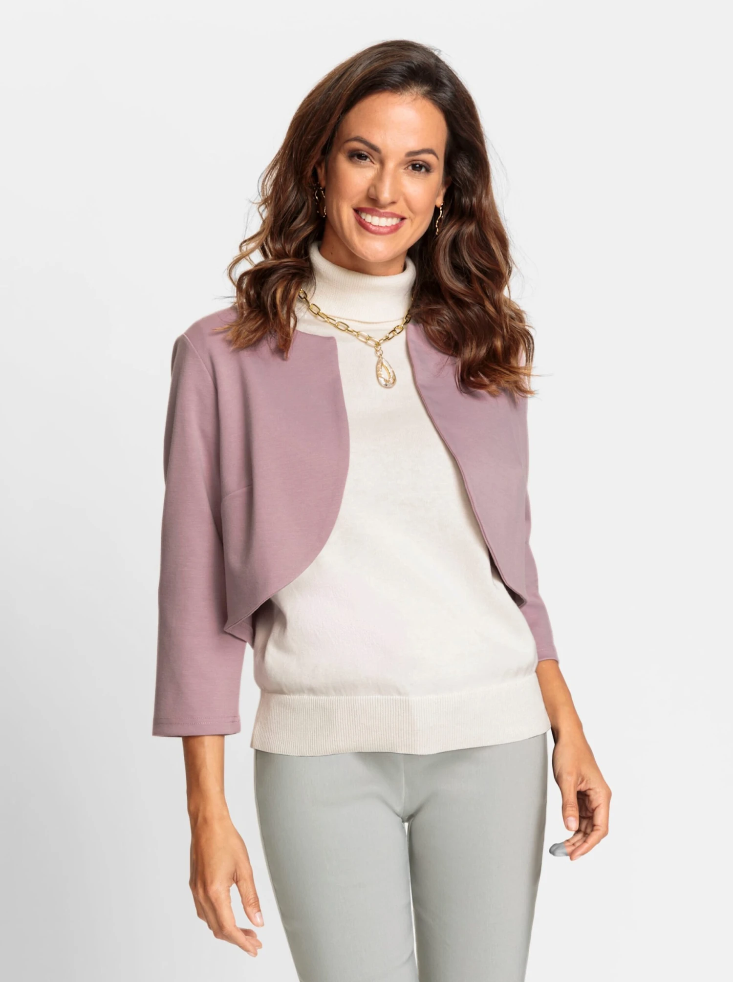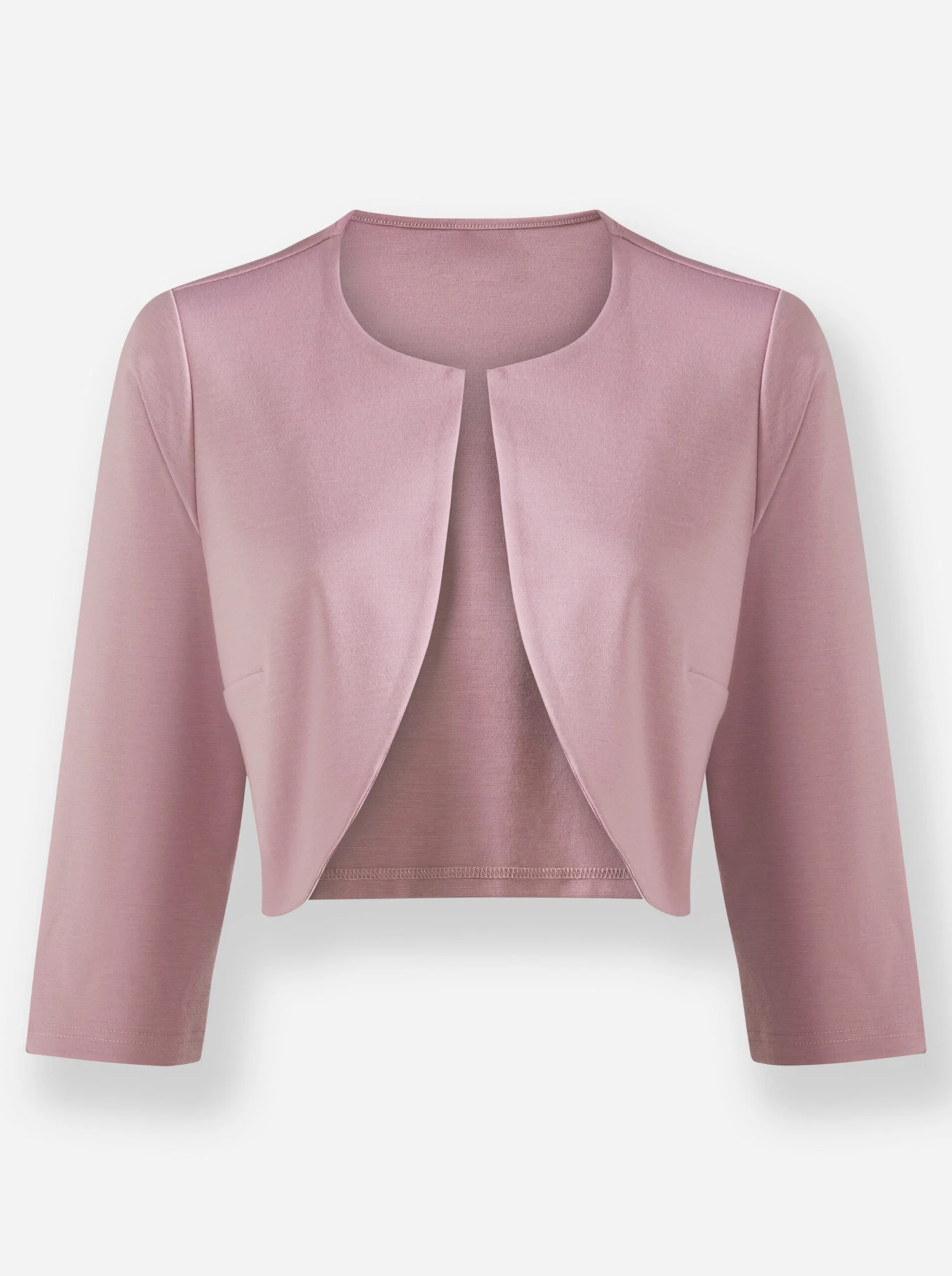 Perfekter Kombi-Partner für Kleider: Shirtbolero in topaktueller, offener Form. 3/4-Ärmel. Vorne abgerundet. Formstabile Jersey-Qualität.