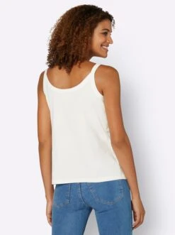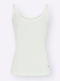 Ob solo oder in Kombination mit Bluse und Co. Dieses Shirttop ist ein tolles Basic für viele Gelegenheiten! Tiefer, paspelierter Rundhals-Ausschnitt mit etwas breiteren Trägern.