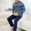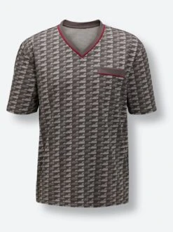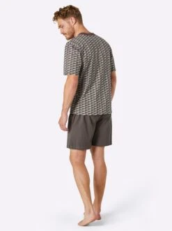 Perfekter Schlafkomfort! Luftiger Shorty mit grafisch gemustertem Oberteil. V-Ausschnitt und Brusttasche. Kurze Dehnbund-Hose mit kontrastfarbigem Bindeband und 2 seitlichen Taschen. Bequemer Single-Jersey.
