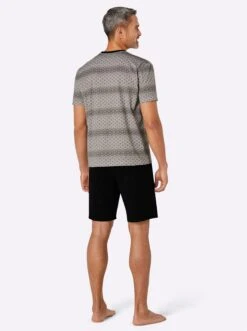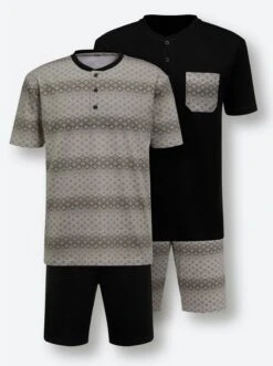 Im Doppelpack: Shortys aus weichem Single-Jersey. 1 gemustertes Oberteil mit kontrastfarbigem Rundhals-Ausschnitt und kurzer Knopfleiste. Das andere in Uni mit Rundhals-Ausschnitt, Knopfleiste und gemusterter Brusttasche. Kurze Hosen mit bequemem Dehnbund.