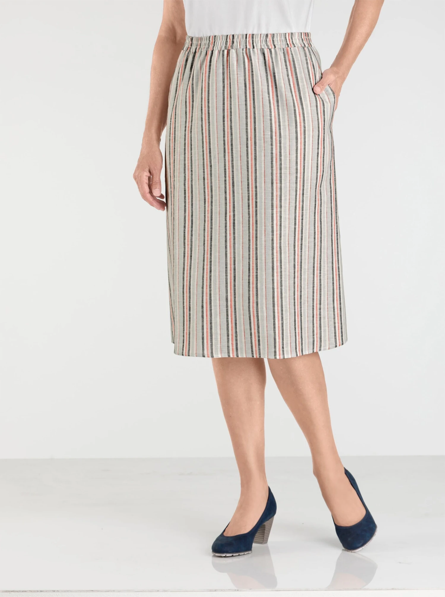 Natürlich schön! Rock im hochwertigen Materialmix mit Leinen-Anteil. Mit komfortablem Rundum-Dehnbund und 2 seitlichen Nahttaschen.