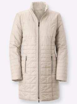 Ab nach draußen! Wunderbar wärmende Jacke mit streckenden Steppungen. Stehkragen, praktischer 2-Wege-Reißverschluss mit seitlich aufgenähtem Ripsband, figurformende Wiener Nähte, 2 Reißverschluss-Taschen, 1 knöpfbare Innentasche.