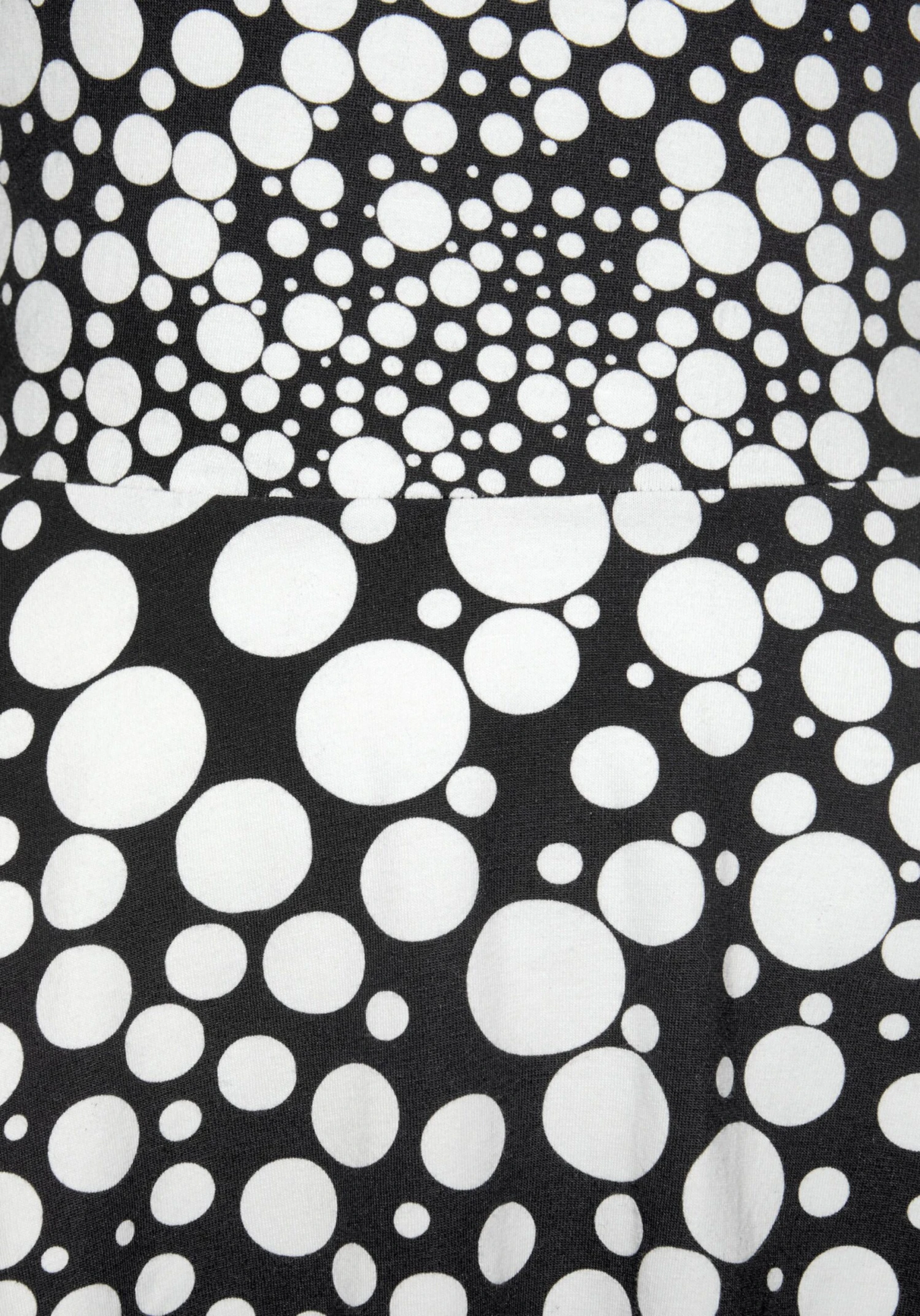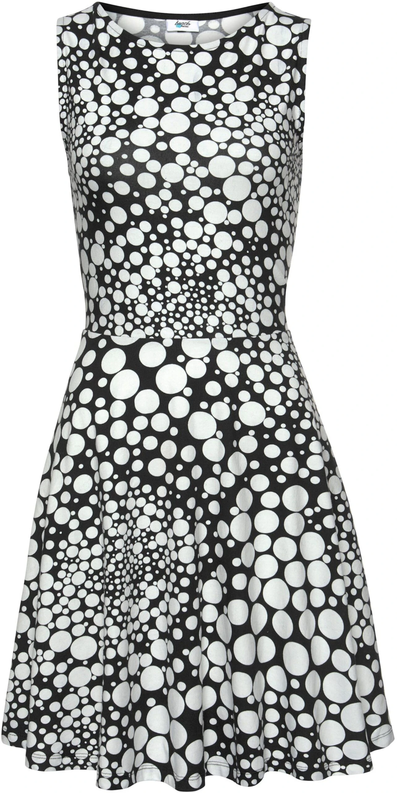 Beachtime Strandkleid mit breiten Tanktopträgern. Schöner Rundhalsausschnitt vorne. Hinten normal geschnitten. Ausgestelltes, leicht schwingendes Rockteil. Allover bedruckt, jedes Teil ein Unikat. Rückenlänge ca. 88 cm. Aus 95% Baumwolle, 5% Elasthan.