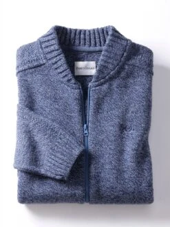 Schöne Melange-Qualität! Die Strickjacke ist ein Allroundtalent für drinnen und draußen. Stehkragen mit praktischem Reißverschluss. 2 schräge Taschen mit gerippter Leiste. Bündchen an Ärmeln und Saum garantieren optimalen Sitz.