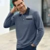 Ein kombistarker Begleiter mit hohem Tragekomfort. Sweatjacke von Marco Donati mit dezenter Struktur in formstabiler Interlock-Qualität und dem gewissen Etwas. Der kontrastige Webbesatz setzt gekonnt Akzente am Untertritt der paspelierten Reißverschluss-Leiste und an den 2 knöpfbaren Taschen, die mehrfarbigen Rippbündchen an den langen Ärmeln und am Saum. Das gerippte Streifenmuster innen am Stehkragen kommt zum Vorschein, wenn man ihn als Umlegekragen trägt. 1 Leistentasche auf linker Brust mit Knopf. Mit dem Kauf unterstützen Sie die Initiative Cotton made in Africa.