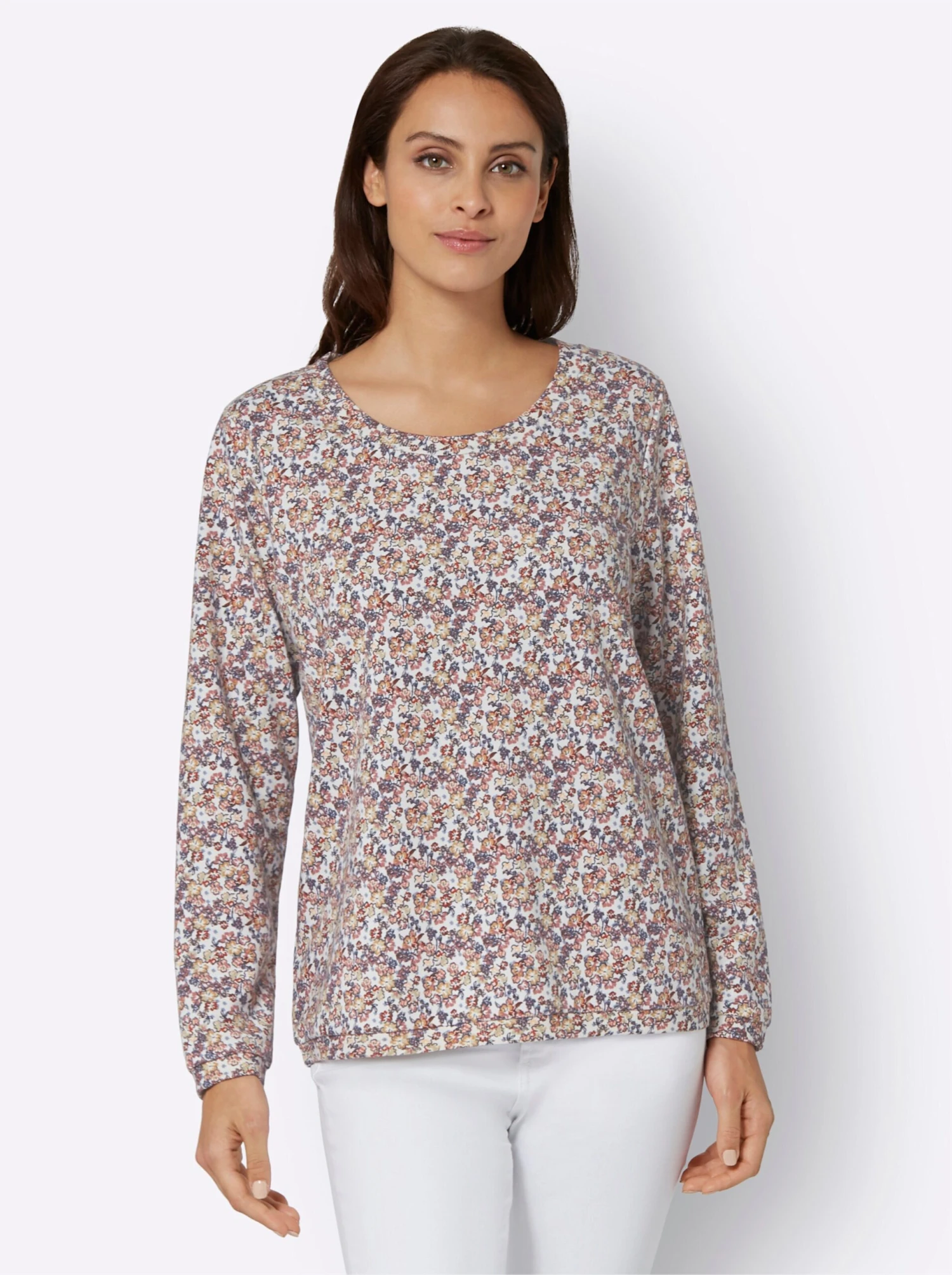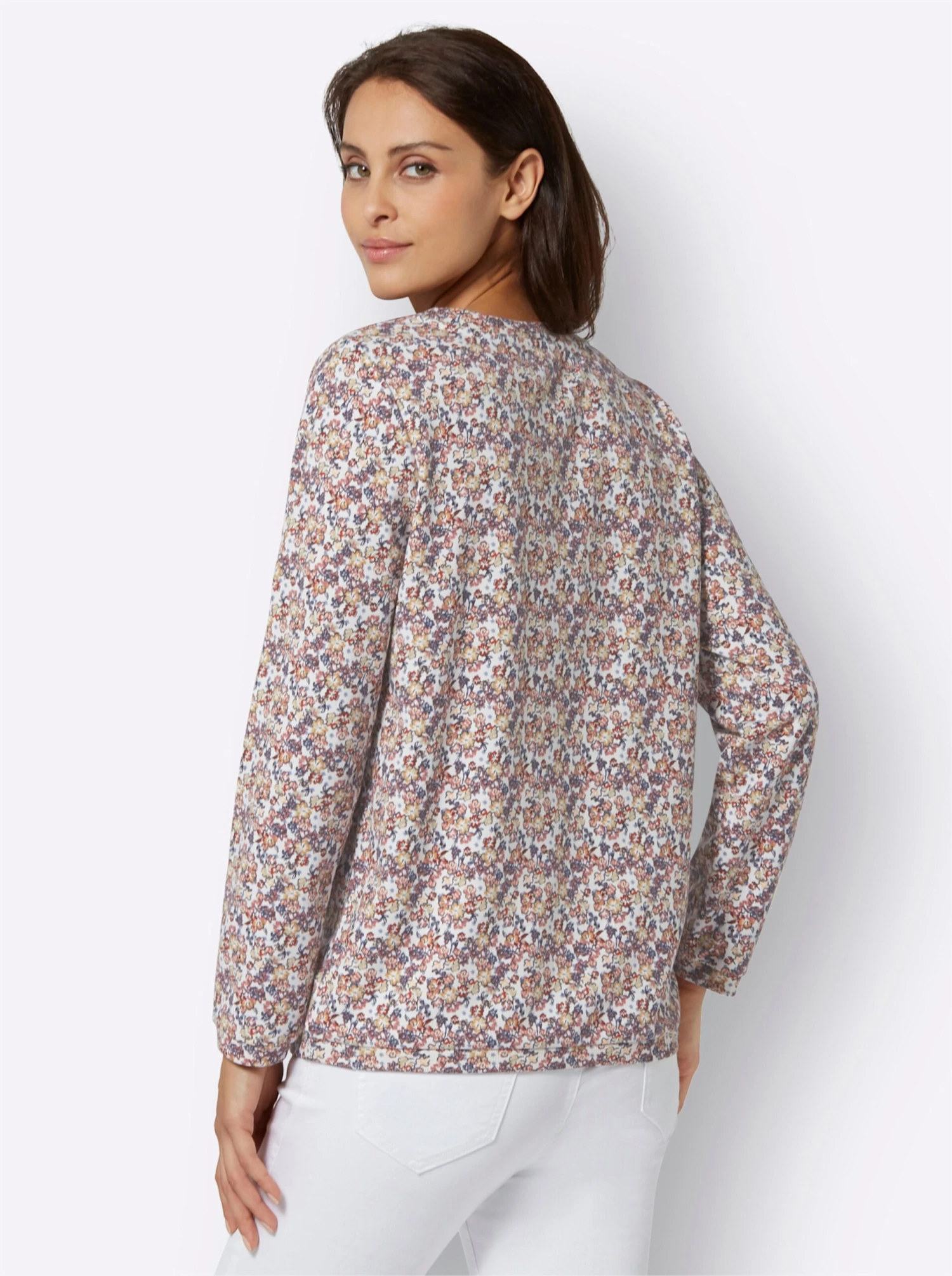 Angenehm leichter, weicher Sweat im verspielten Millefleurs-Muster: Sweatshirt mit bedruckten Rippbündchen am Rundhals-Ausschnitt, an den langen Ärmeln und am Saum.